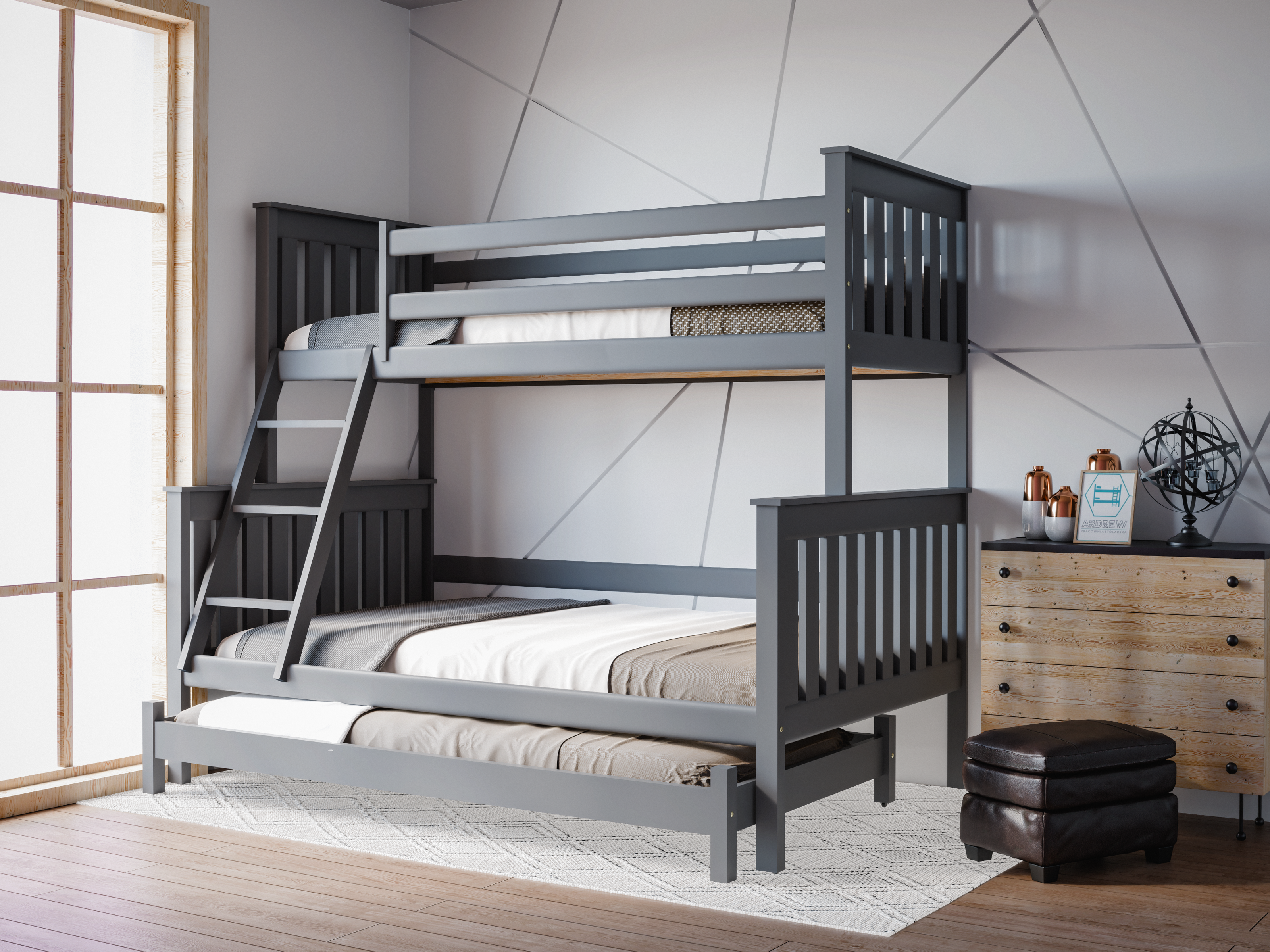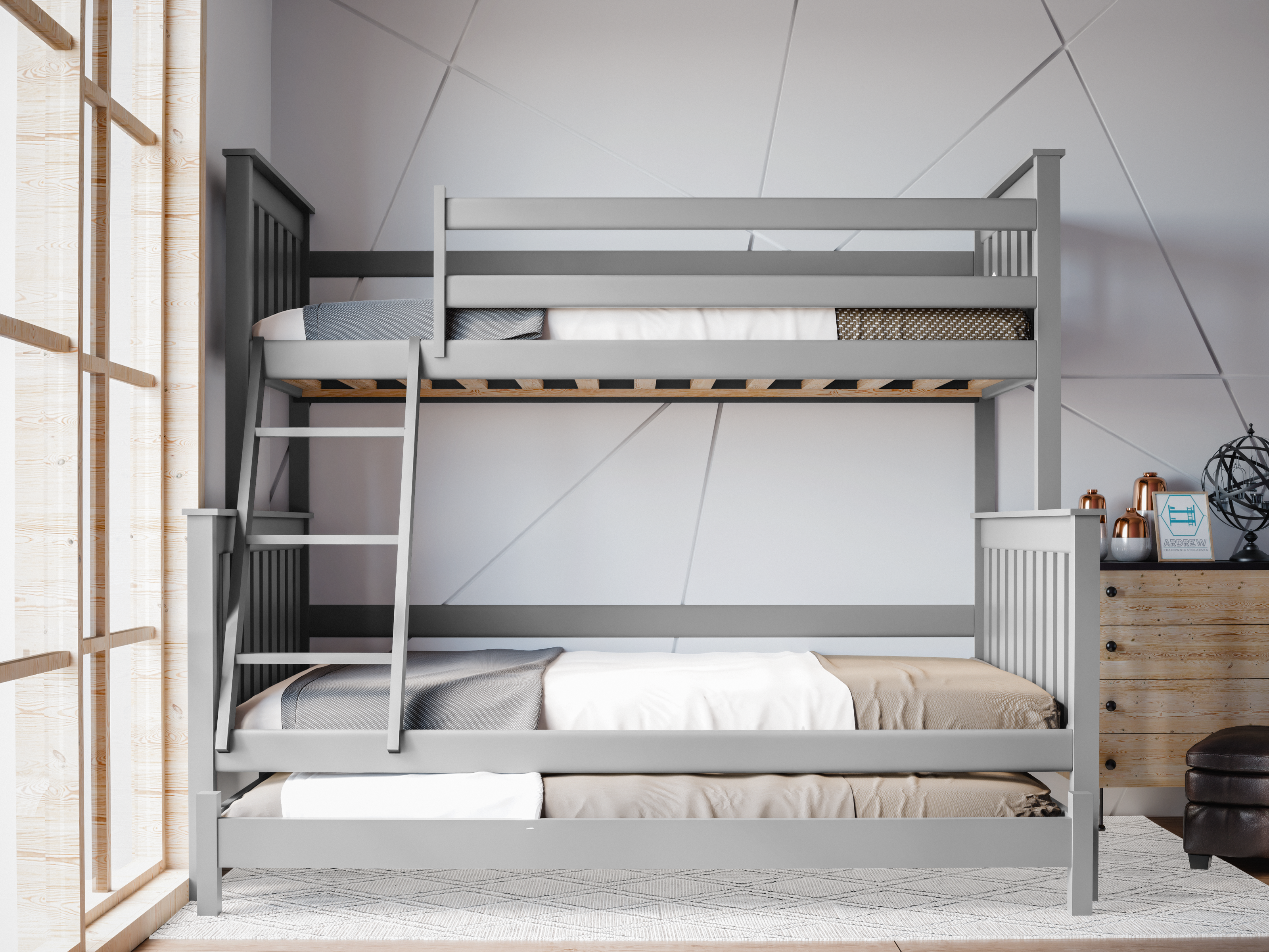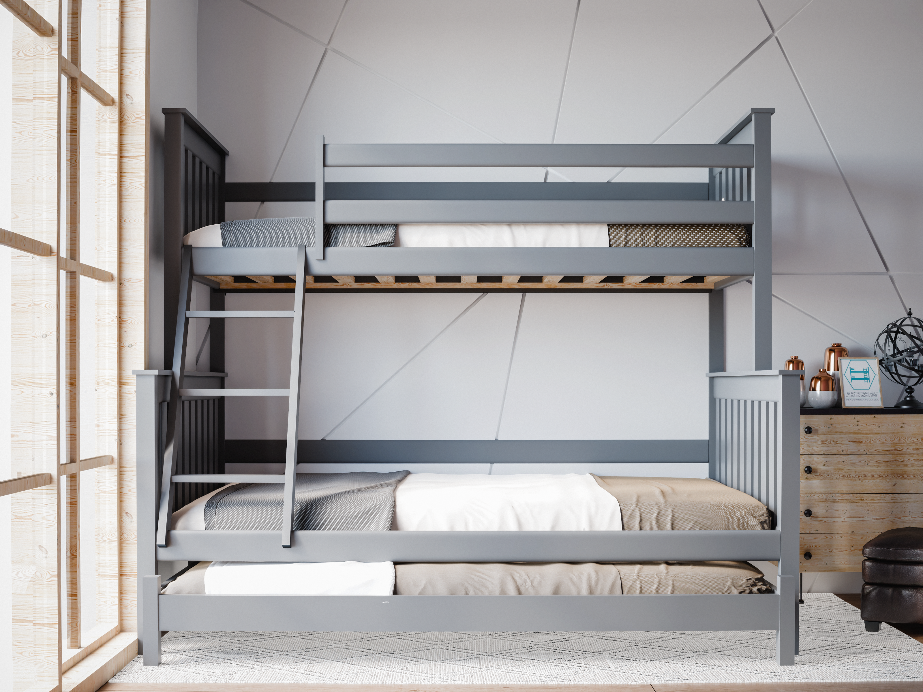 Łóżko piętrowe 3-osobowe Dallas – nowoczesność, funkcjonalność i dodatkowe miejsce do spania