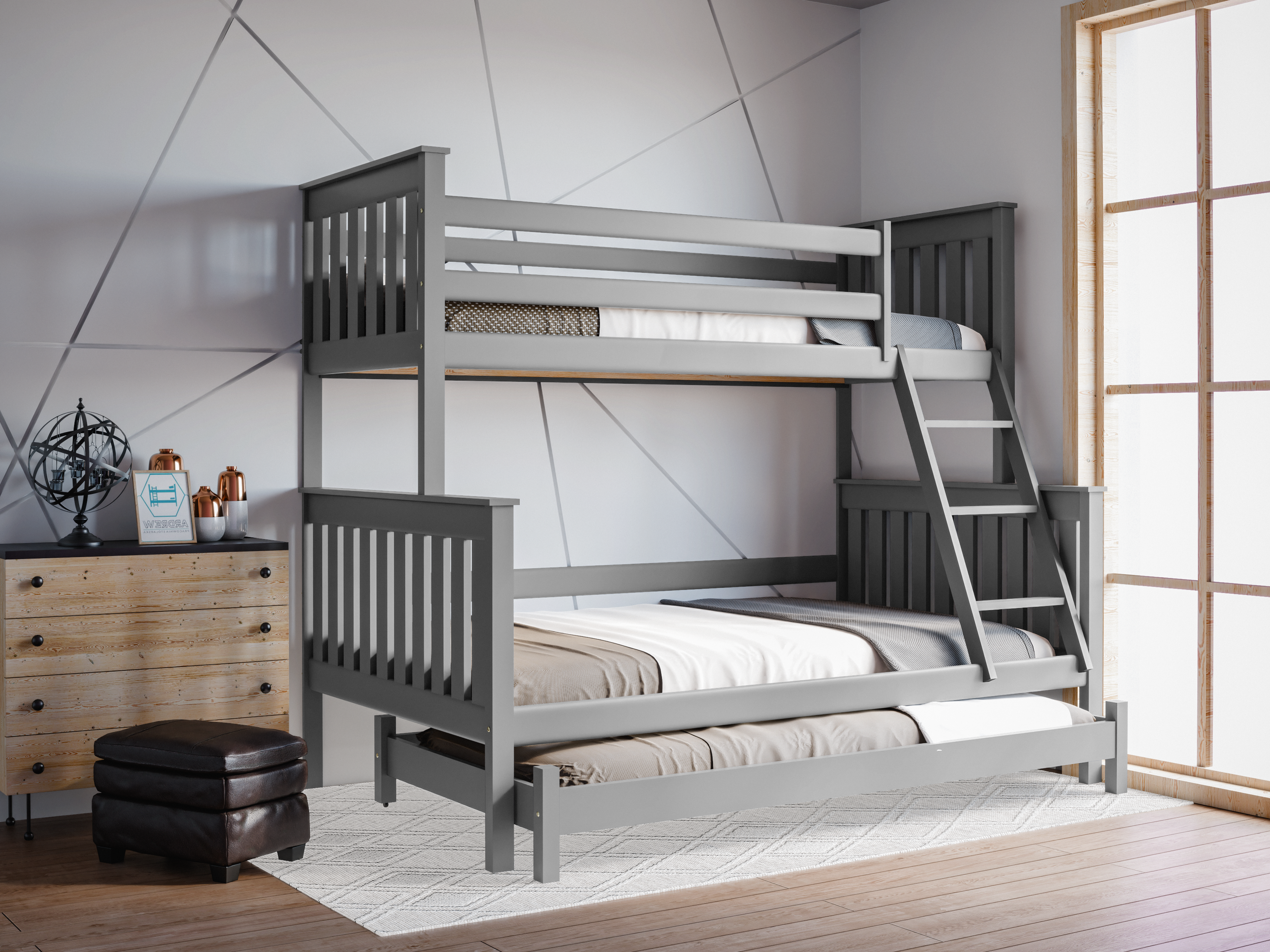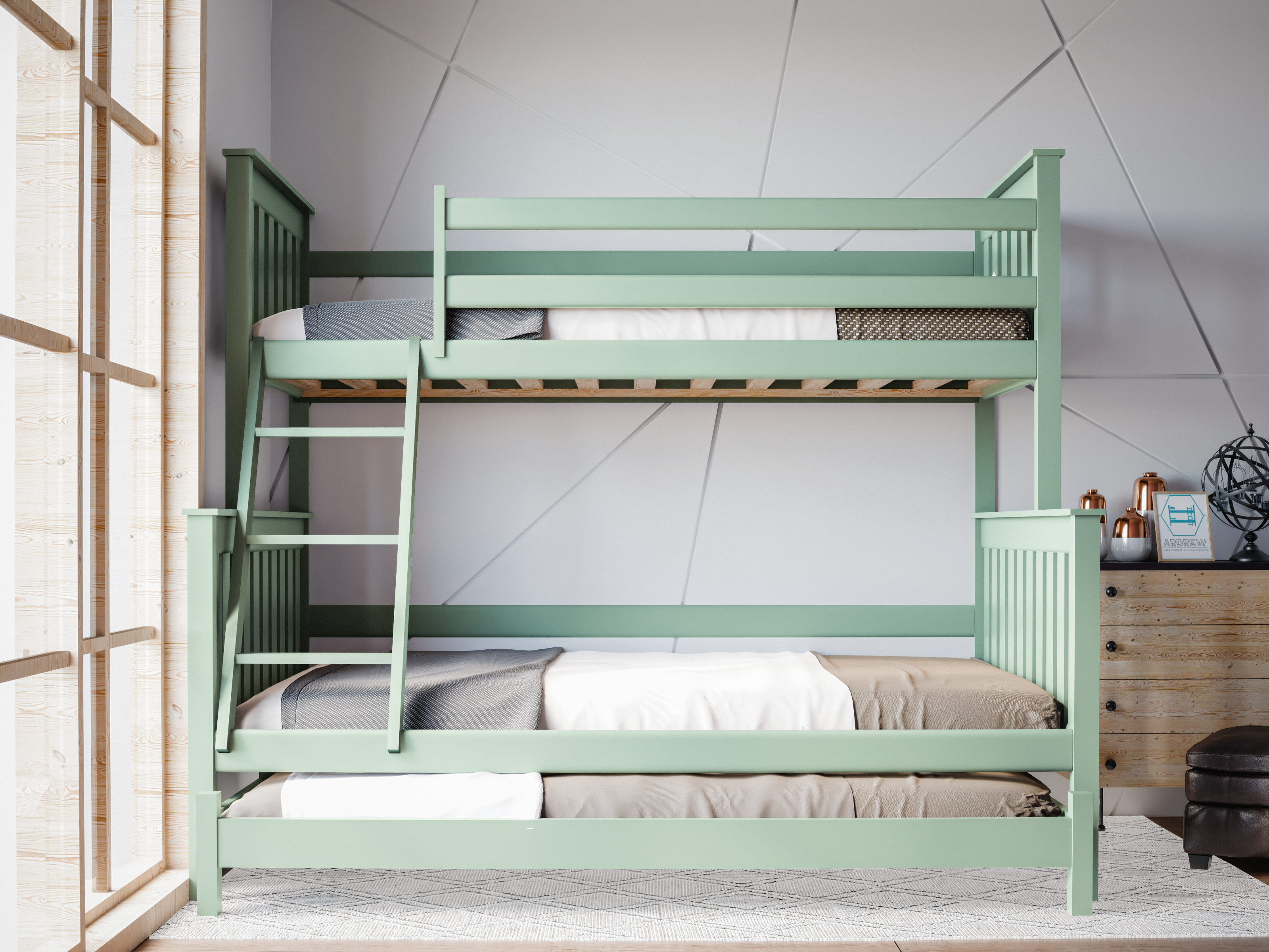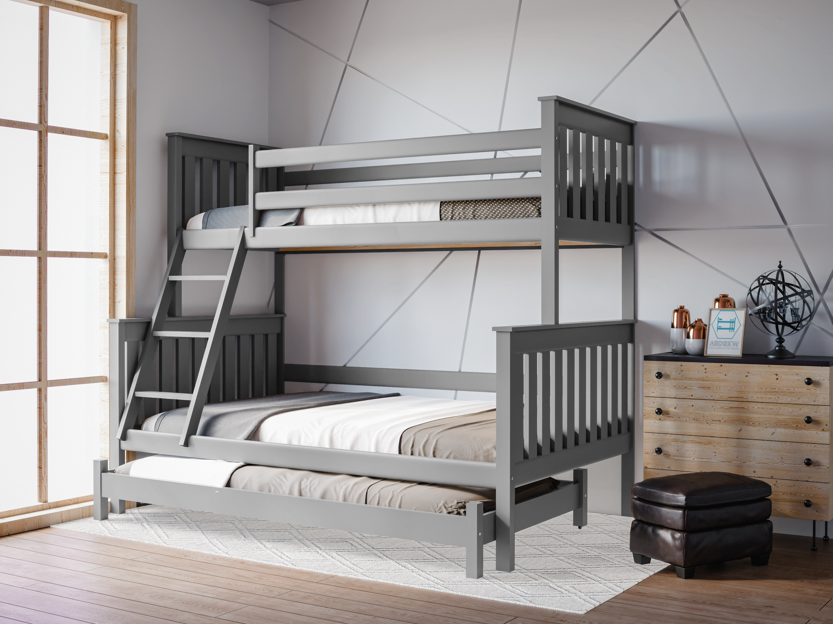 Łóżko piętrowe 3-osobowe Dallas – nowoczesność, funkcjonalność i dodatkowe miejsce do spania