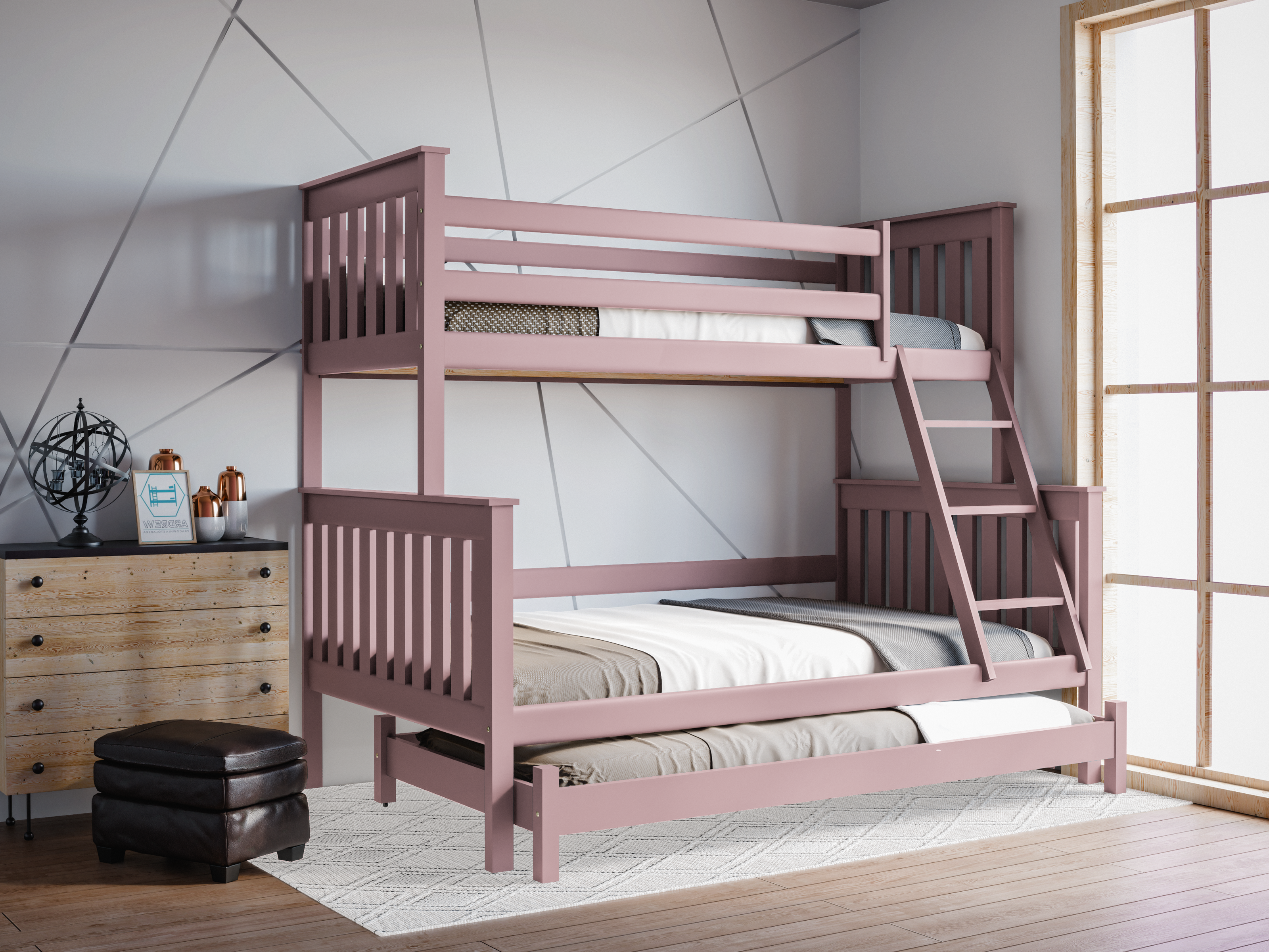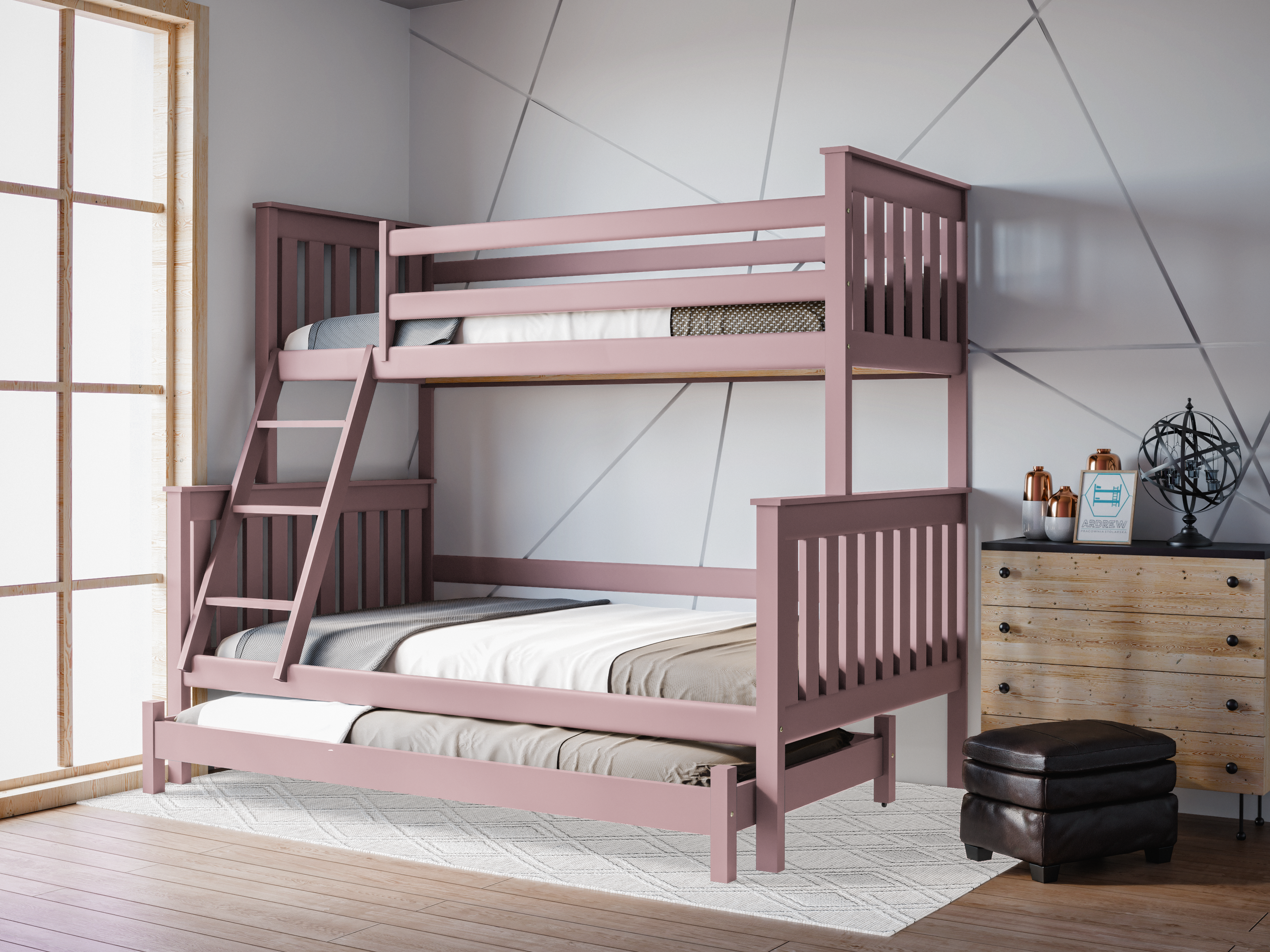 Łóżko piętrowe 3-osobowe z wysuwanym łóżkiem Dallas - wybór koloru