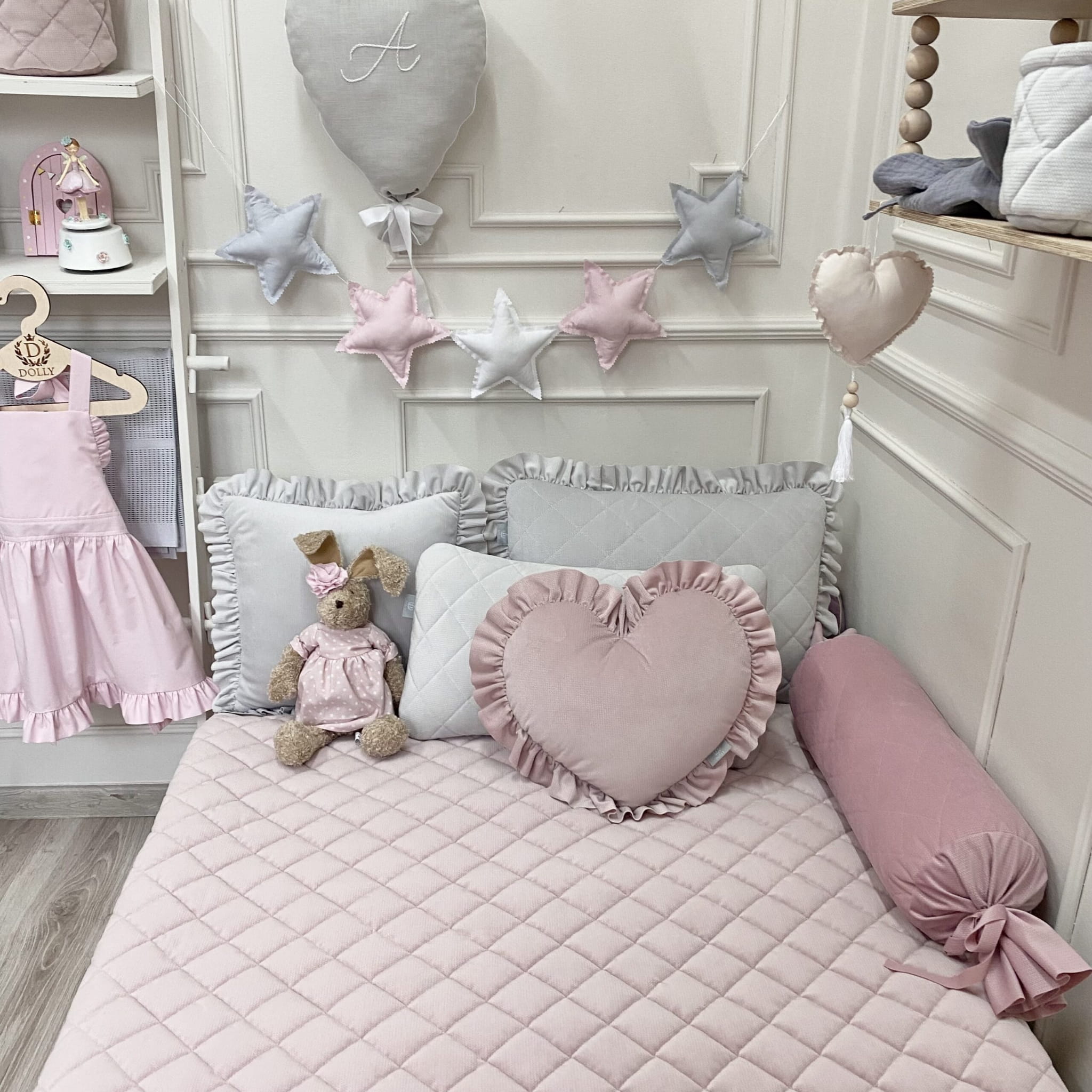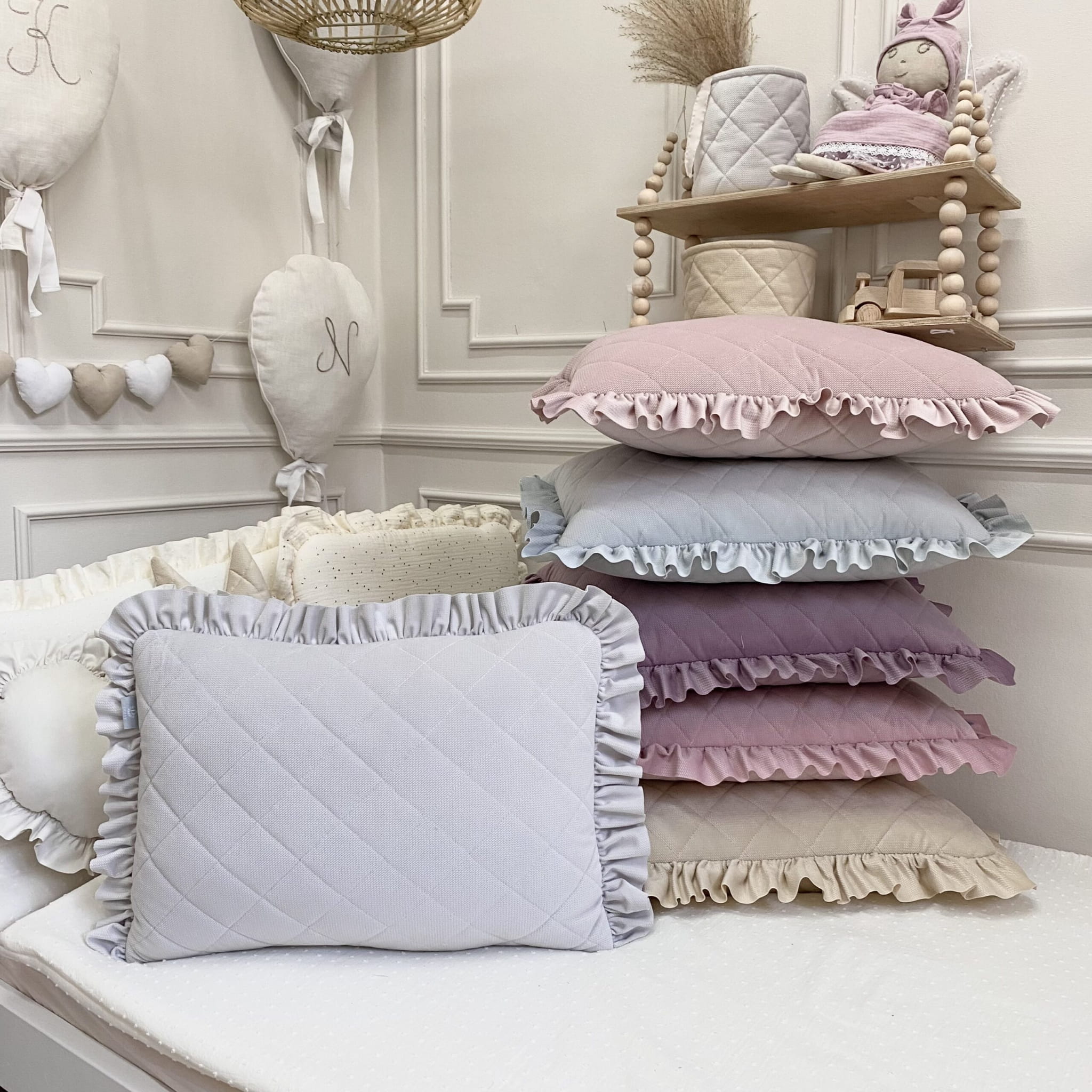 Ozdobna poducha w kształcie prostokąta w minimalistycznej, pikowanej wersji.