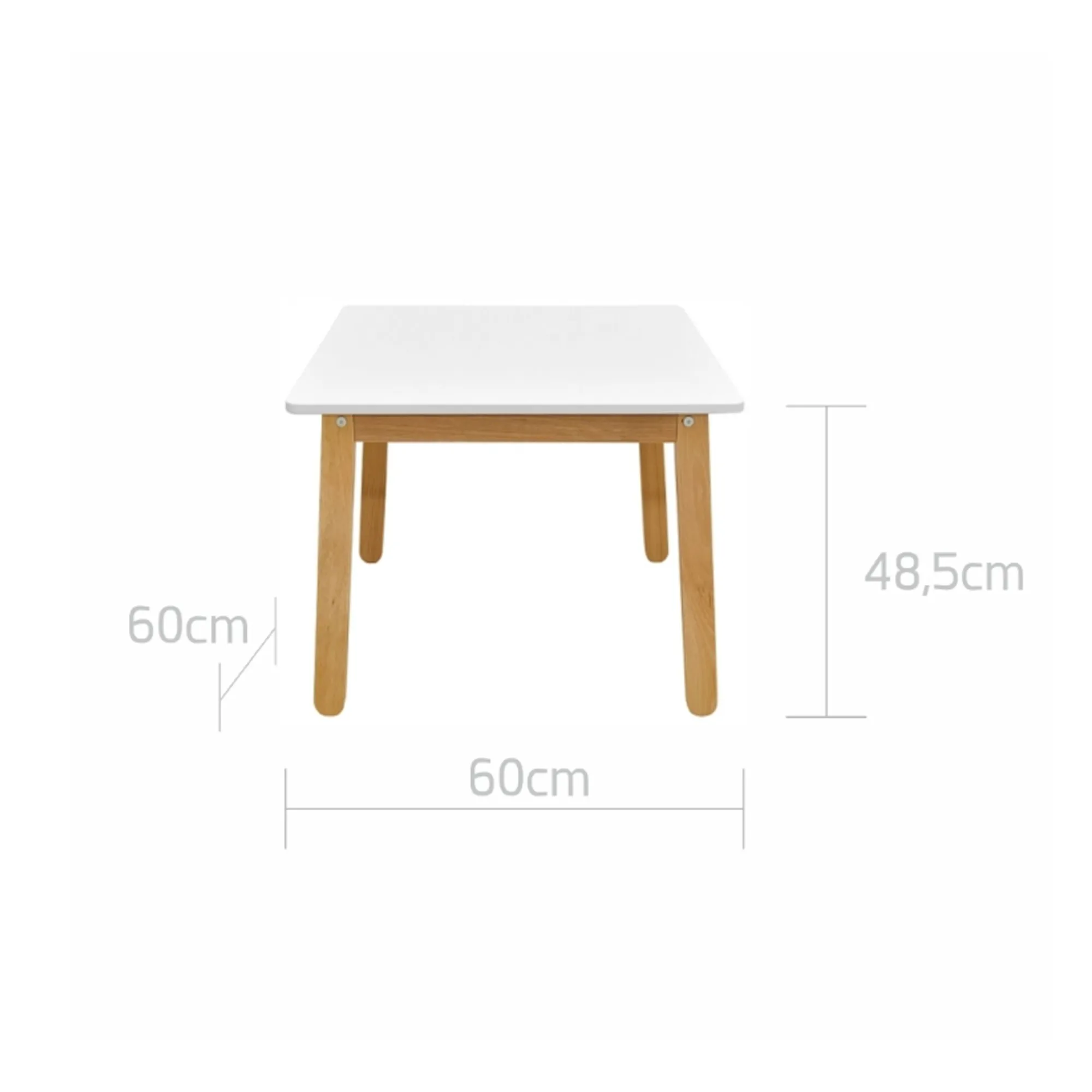 - Blat i siedzisko: Wysokiej jakości płyta MDF, lakierowana trwałymi farbami bezpiecznymi dla dzieci.
