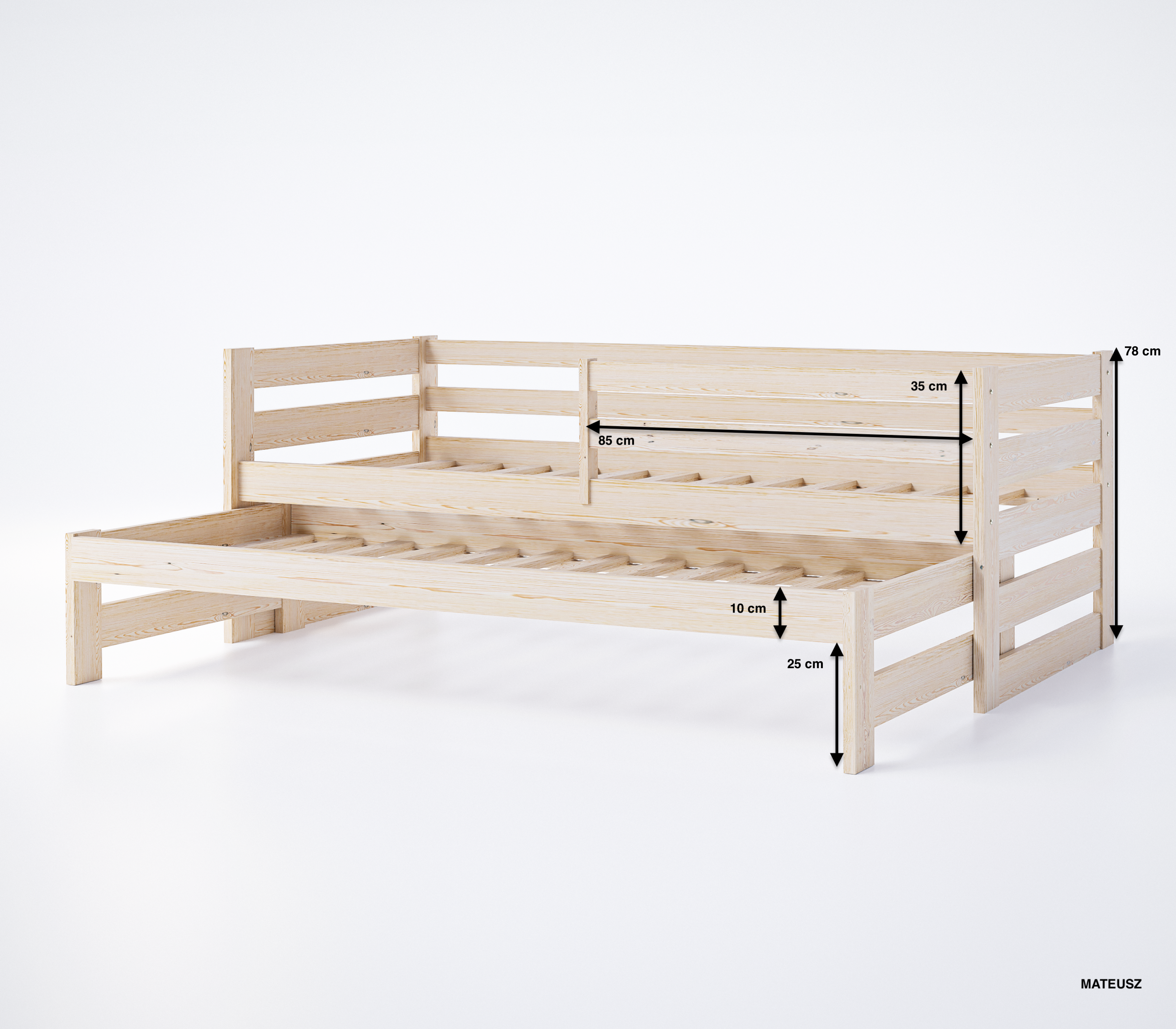 - zalecana wysokość materaca do wysuwanego łóżka: 10 cm