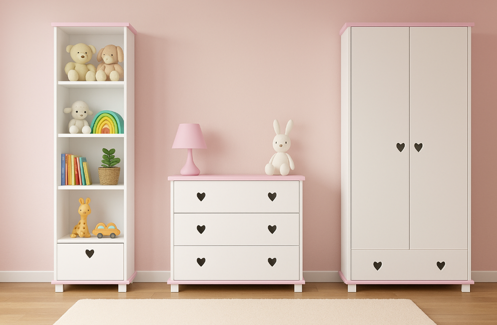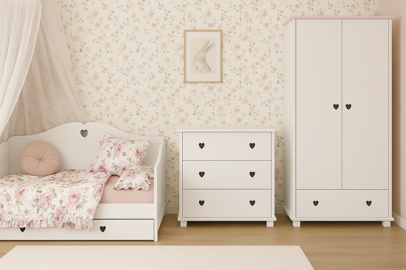 Zestaw mebli dziecięcych HEART – urocza kolekcja do pokoju dziewczynki