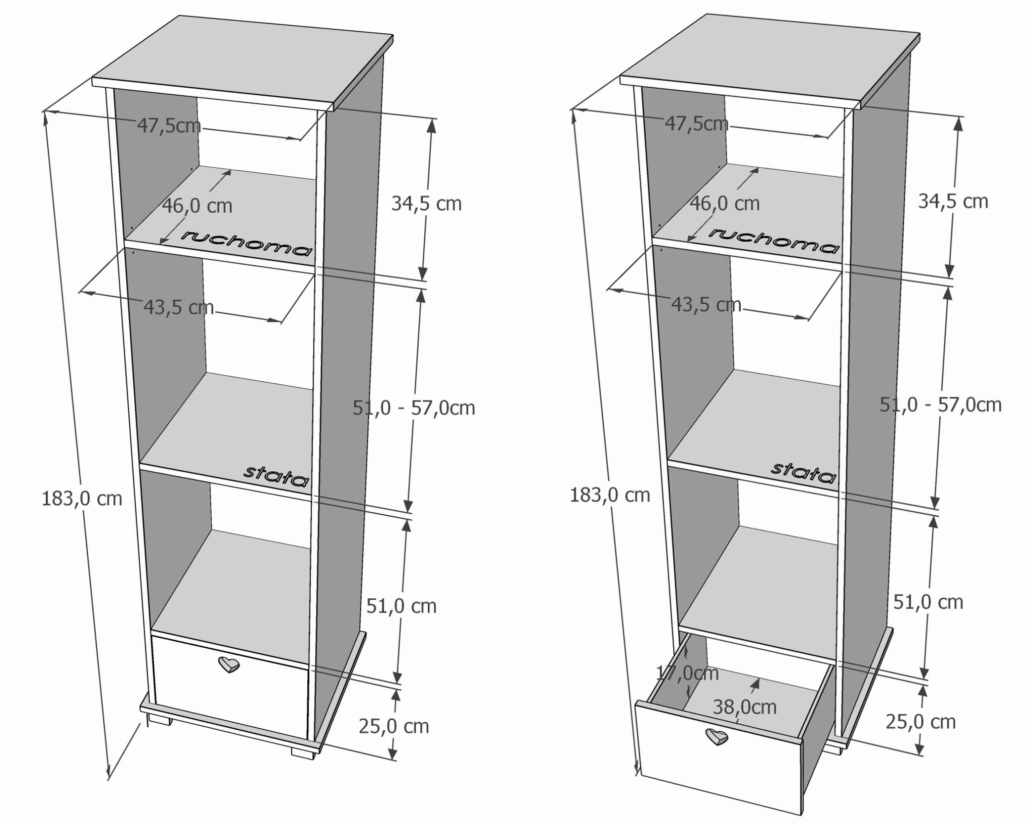 ● regał z dwiema półkami stałymi i dwiema regulowanymi