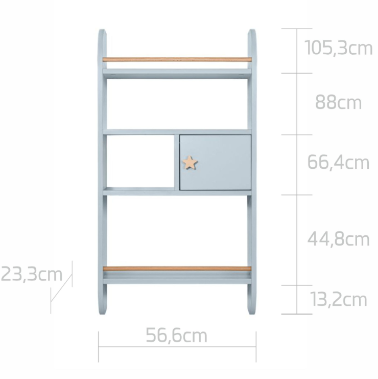 Może zostać zamontowana, nad biurkiem, łóżkiem oraz nisko przy podłodze umożliwiając swobodny dostęp do książeczek, zabawek i innych bibelotów.