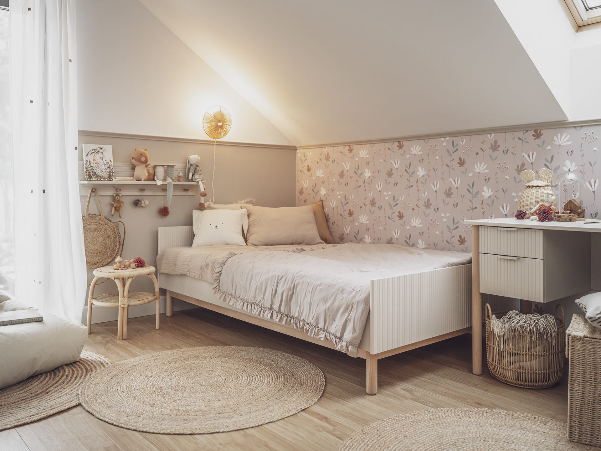 Design kolekcji Miloo łączy elegancję z funkcjonalnością — półka doskonale wpasowuje się zarówno w klasyczne, jak i nowoczesne aranżacje. Dzięki kompaktowym wymiarom łatwo dopasujesz ją pod skosem, nad przewijakiem lub przy biurku, tworząc uporządkowaną i estetyczną przestrzeń dla dziecka.