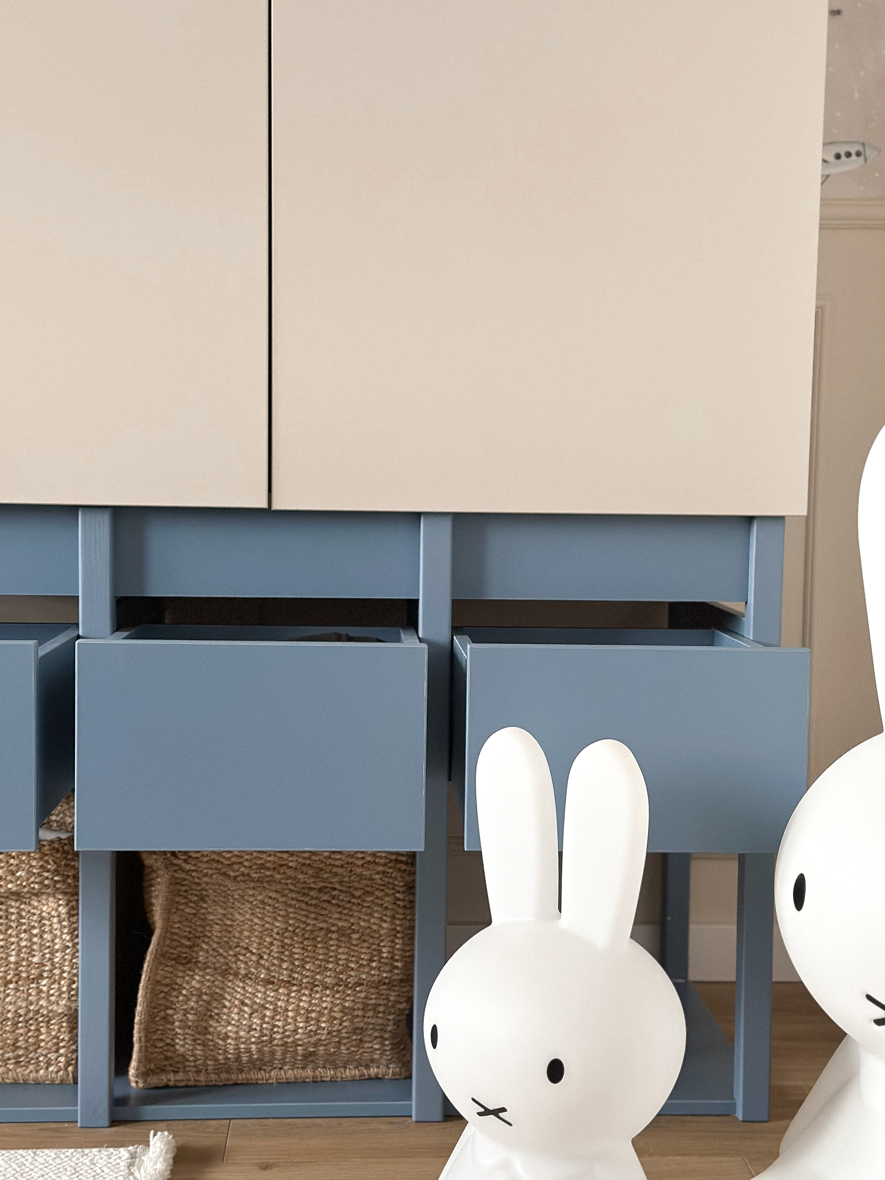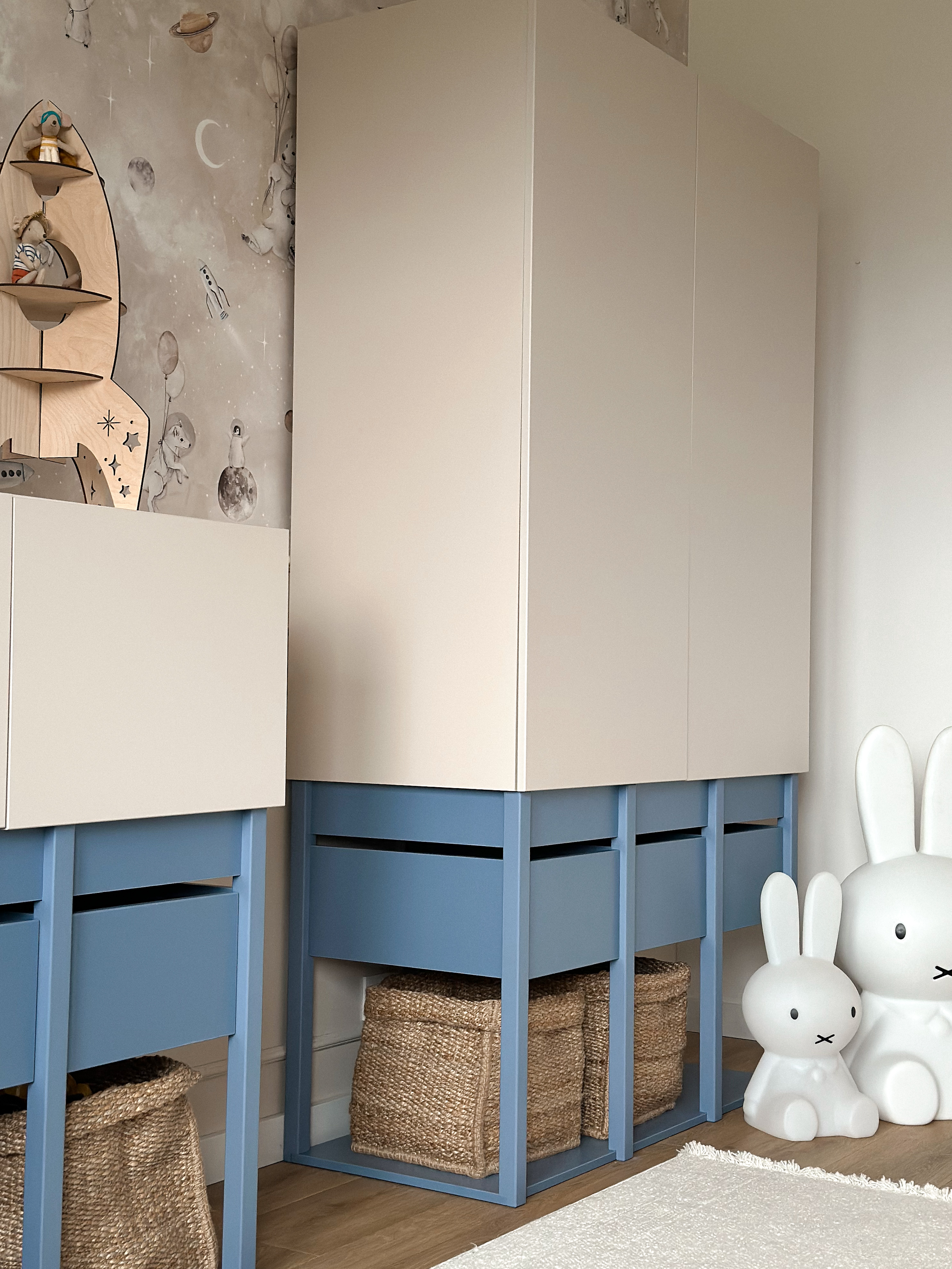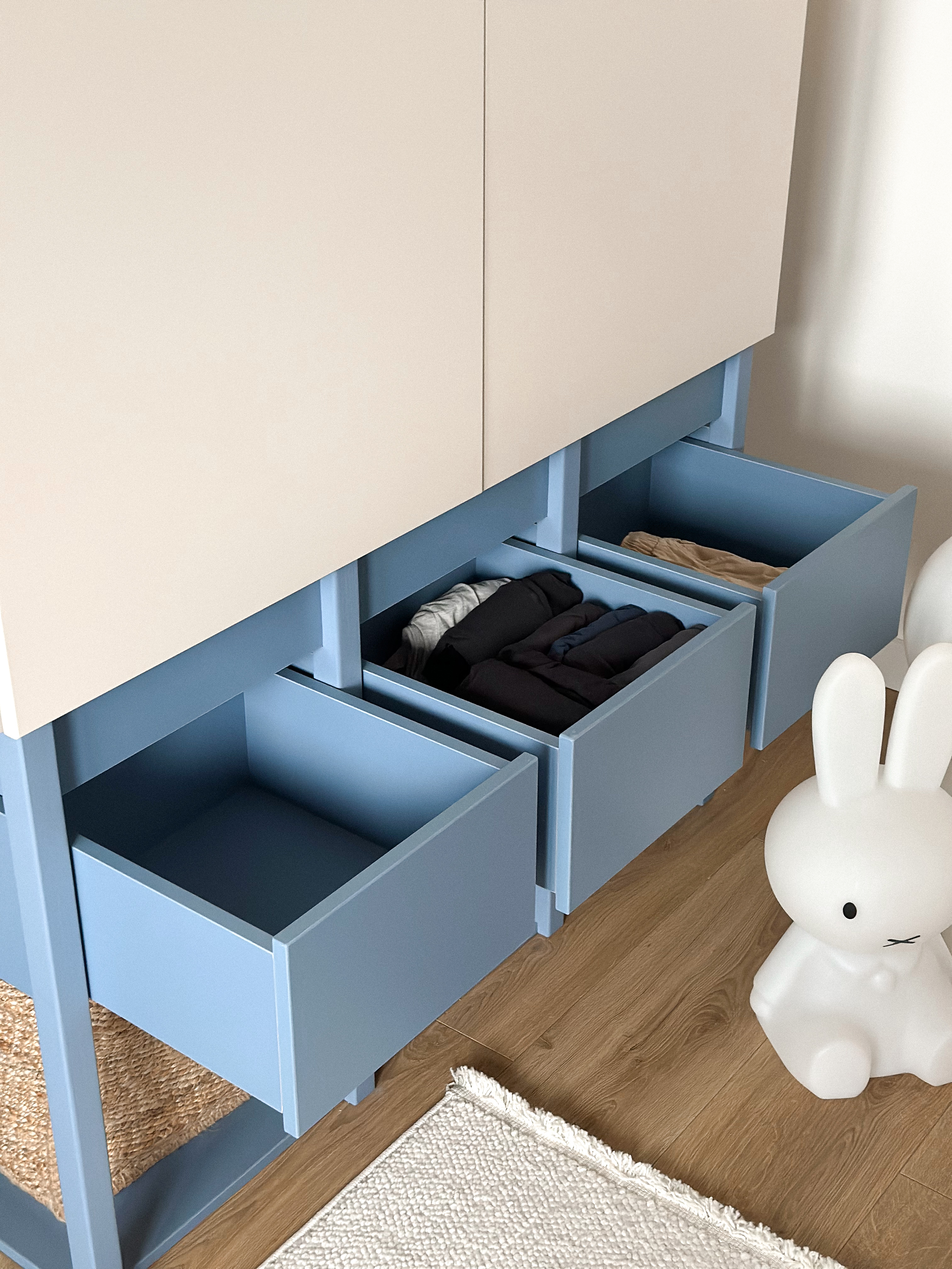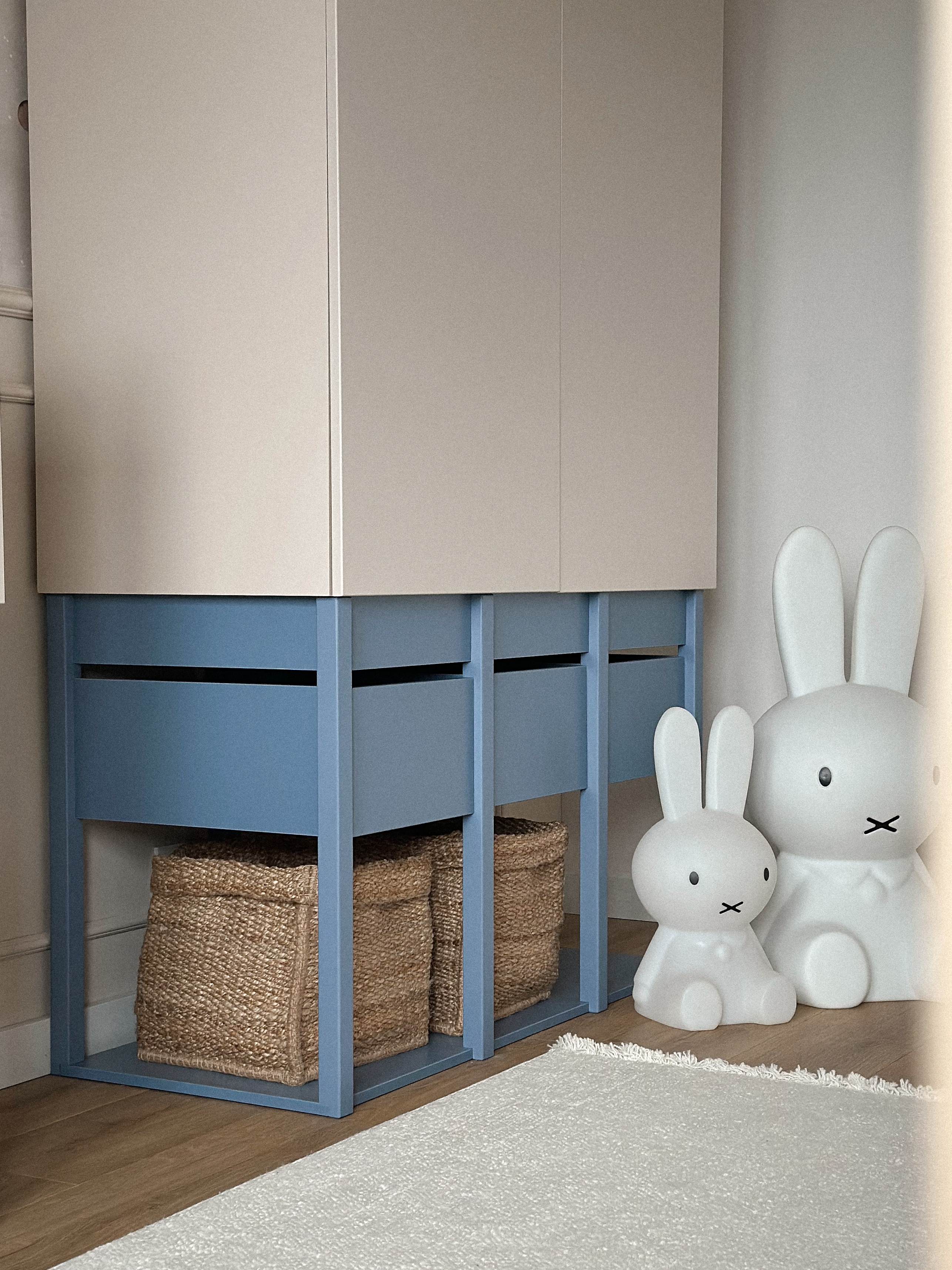 Nie. Każdy kolor (zgaszony niebieski, eukaliptus oraz pudrowy róż) funkcjonuje jako osobny produkt w sklepie. Konstrukcja i wymiary pozostają takie same — informacja o kolorze znajduje się w tytule produktu. Inne kolory oraz pozostałe meble z kolekcji znajdziesz TUTAJ.