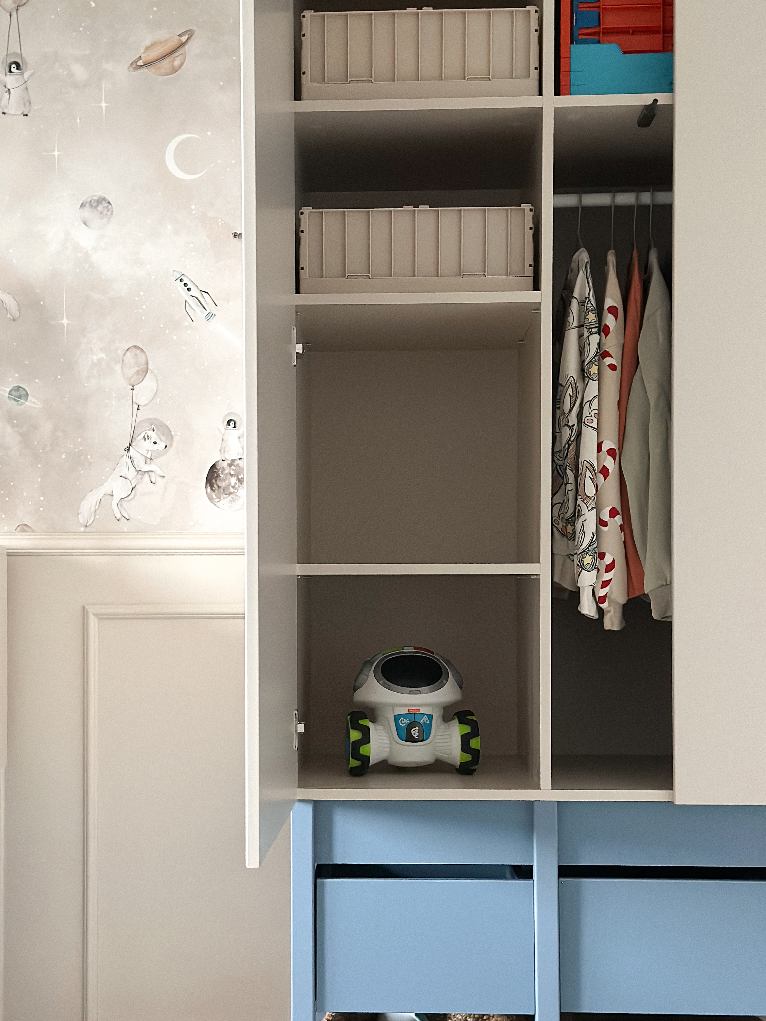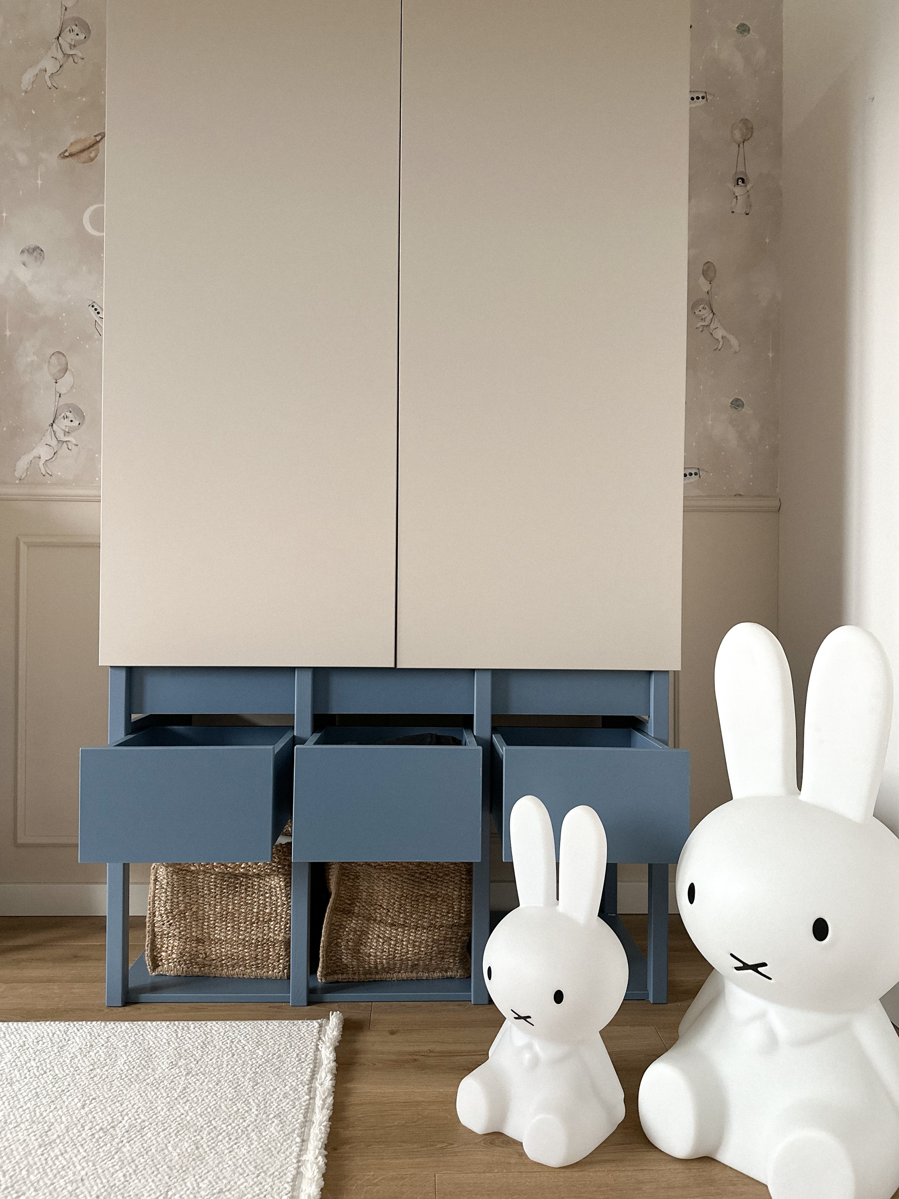 Zgaszony niebieski — świeży, nowoczesny akcent do dziecięcego wnętrza.