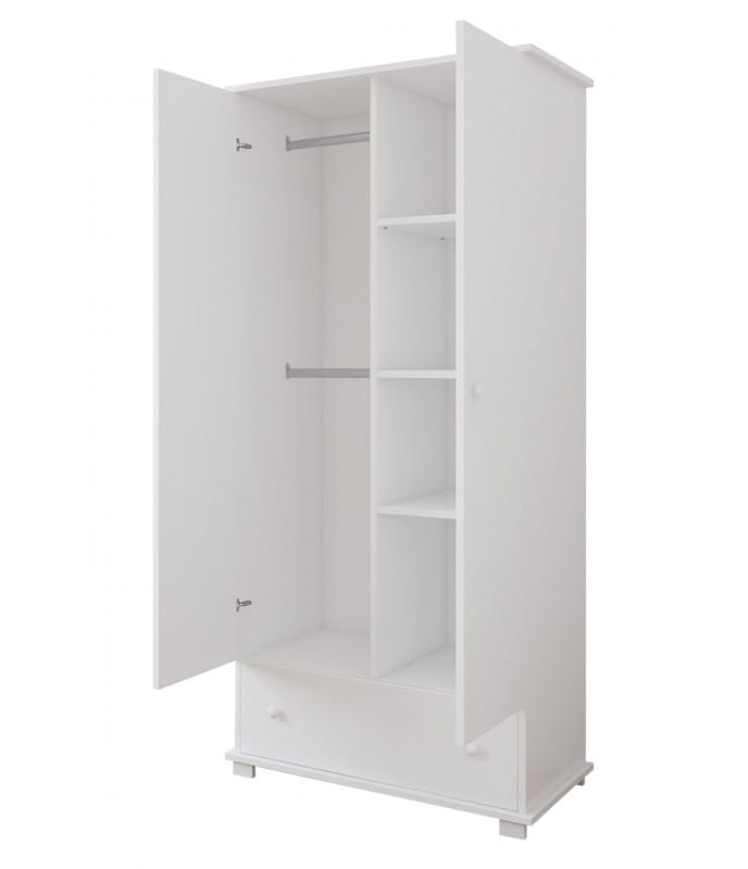 Szafa dziecięca STARS BABY z szufladą to praktyczne i estetyczne rozwiązanie do przechowywania dziecięcych ubrań i akcesoriów. Przemyślany układ wnętrza, pojemna szuflada oraz delikatne detale sprawiają, że jest to mebel wygodny w codziennym użytkowaniu i spójny z aranżacją pokoju dziecka.