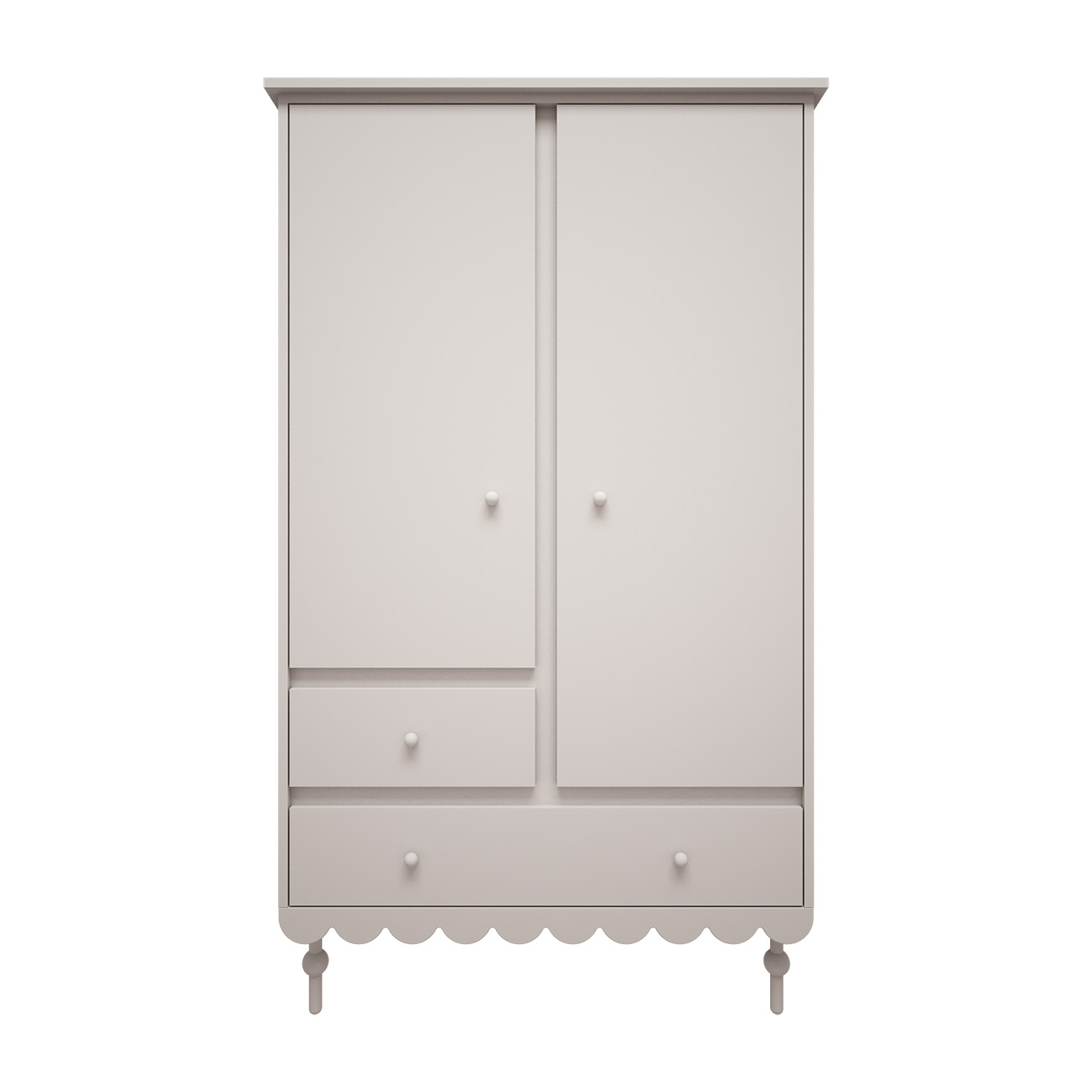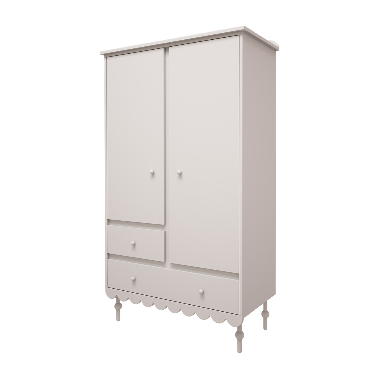 Szafa 2-drzwiowa z szufladami Babushka to funkcjonalny i stylowy mebel zaprojektowany z myślą o pokojach dziecięcych i młodzieżowych. Prosta bryła została wzbogacona o charakterystyczną falbankę u podstawy, która nadaje całości wyjątkowego, boho charakteru typowego dla kolekcji Babushka.