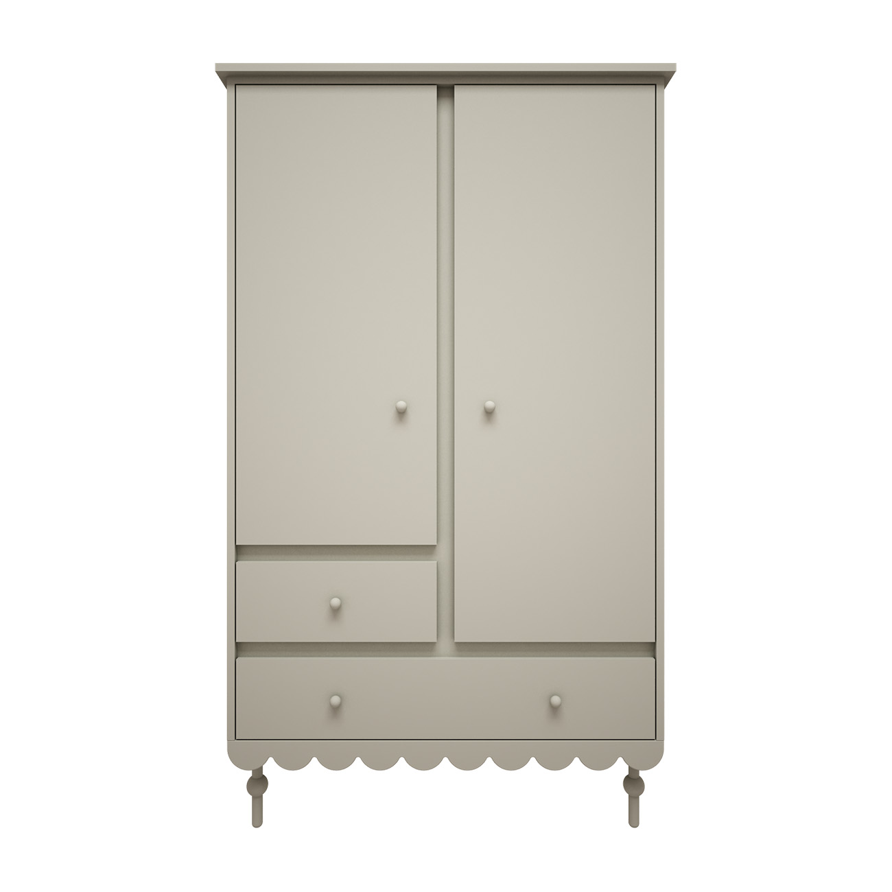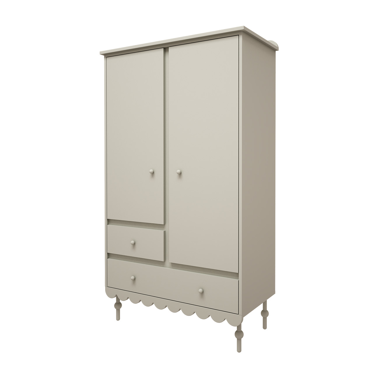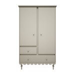 Szafa 2-drzwiowa z szufladami Babushka to funkcjonalny i stylowy mebel zaprojektowany z myślą o pokojach dziecięcych i młodzieżowych. Prosta bryła została wzbogacona o charakterystyczną falbankę u podstawy, która nadaje całości wyjątkowego, boho charakteru typowego dla kolekcji Babushka.