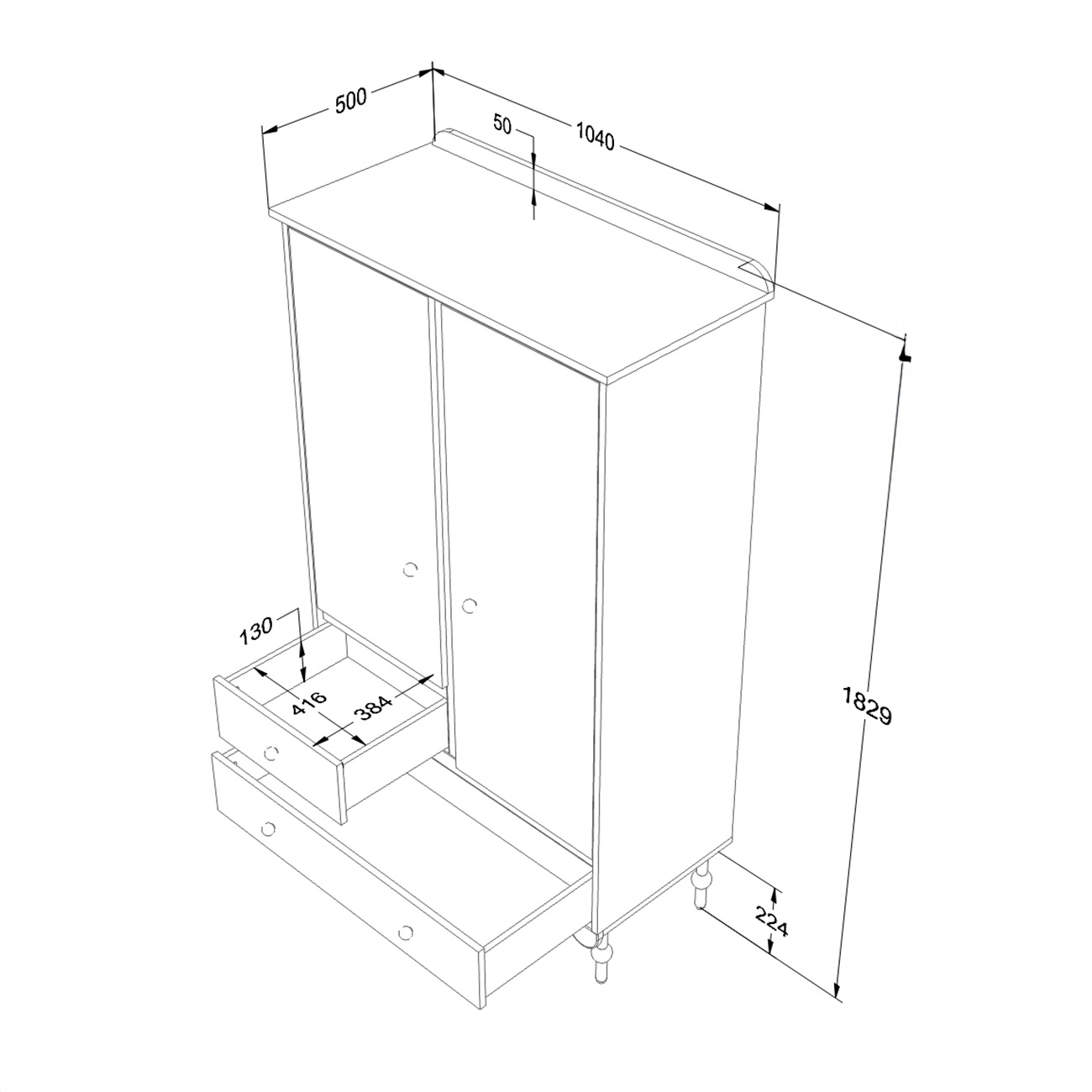 Szafa 2-drzwiowa z szufladami Babushka to funkcjonalny i stylowy mebel zaprojektowany z myślą o pokojach dziecięcych i młodzieżowych. Prosta bryła została wzbogacona o charakterystyczną falbankę u podstawy, która nadaje całości wyjątkowego, boho charakteru typowego dla kolekcji Babushka.