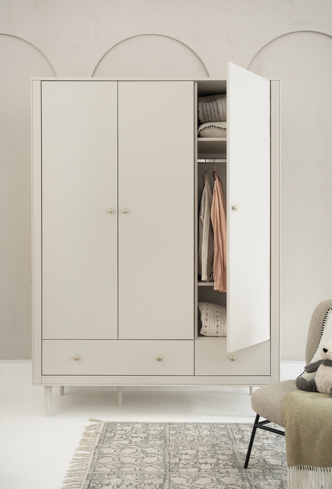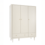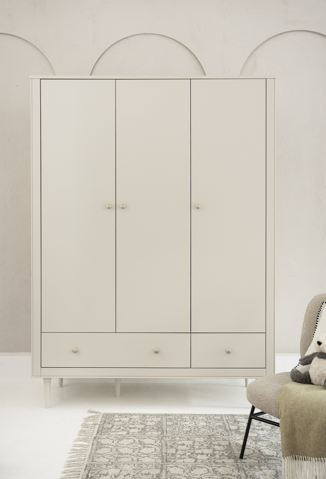 Trzydrzwiowa szafa z kolekcji PETITE to połączenie klasycznej formy, nowoczesnego stylu i funkcjonalnych rozwiązań. Jej elegancki wygląd, delikatne detale i szampański kolor sprawiają, że idealnie wpisuje się w wystrój pokoju dziecka, tworząc harmonijną i przytulną przestrzeń.