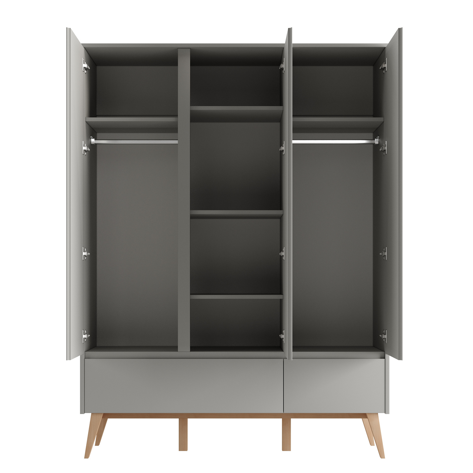 Szafa wyposażona jest w system cichego zamykania drzwi, który zapewnia komfort i bezpieczeństwo użytkowania. Wewnątrz znajdują się dwie przegrody pionowe oraz liczne możliwości aranżacji przestrzeni – standardowo trzy półki w środkowej części oraz dwie półki i dwa drążki na ubrania w częściach zewnętrznych. Istnieje możliwość dokupienia dodatkowych półek (maksymalnie czterech sztuk), a środkowe drzwi można zamontować zarówno z lewej, jak i prawej strony, w zależności od potrzeb i układu pokoju.