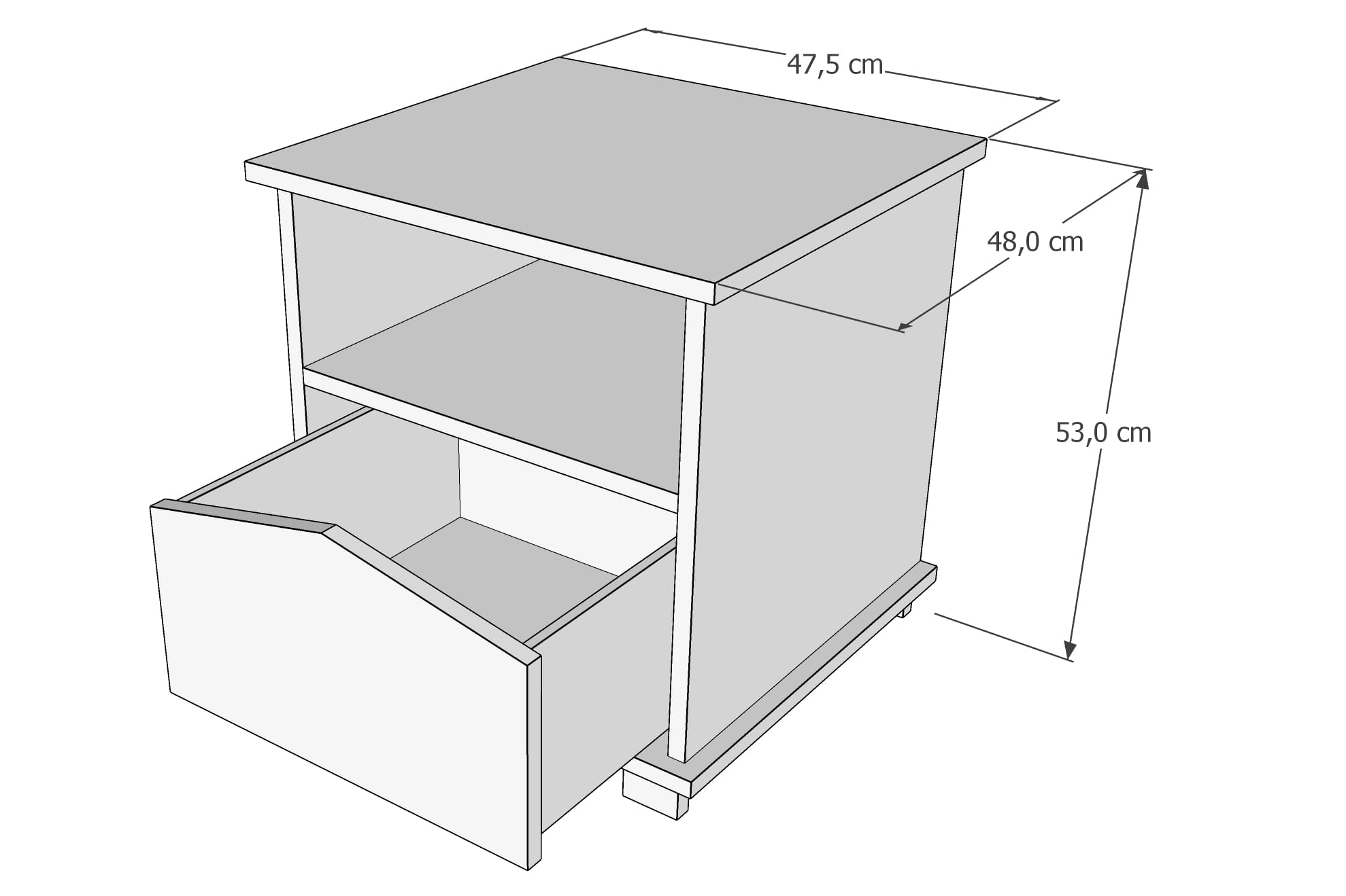 - 3 szuflady osadzone na prowadnicach kulkowych - gwarantujących płynne i pełne wysuwanie