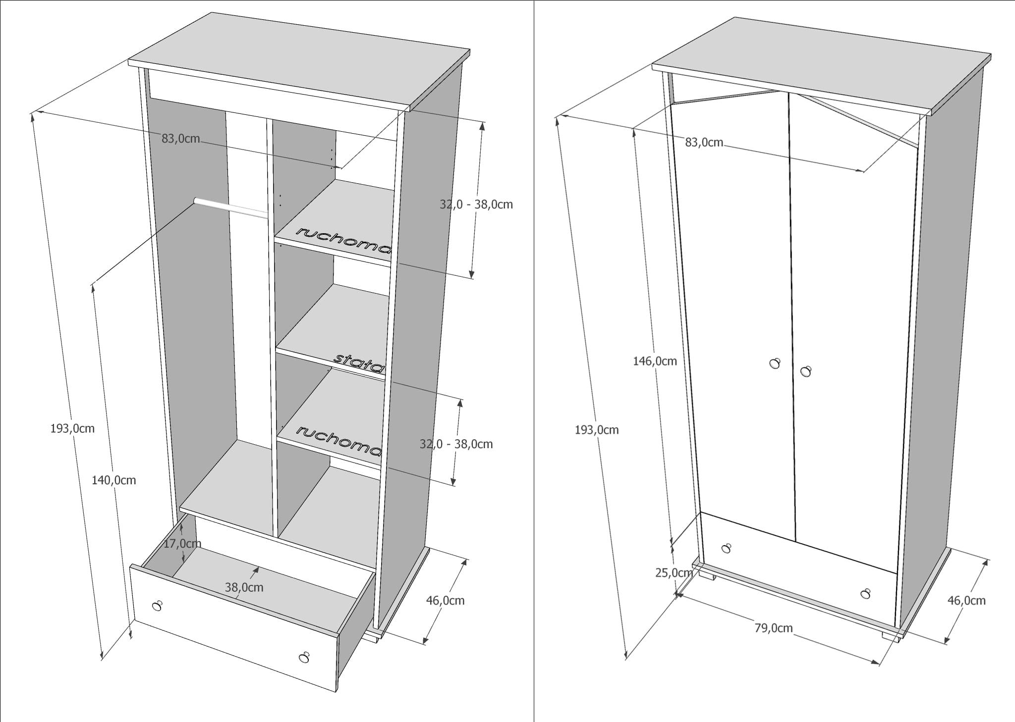 Wymiary szafy:193/83/46