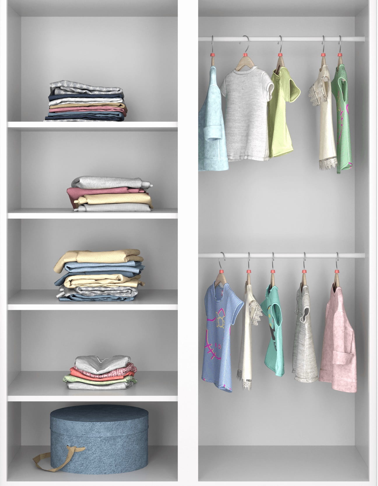 - Prawa strona przystosowana do montażu trzech półek (jedna stała, dwie regulowane)