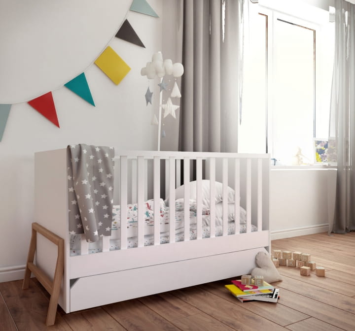 - przygotowane do założenia barierki zabezpieczającej dziecko przed wypadnięciem z łóżeczka podczas snu,