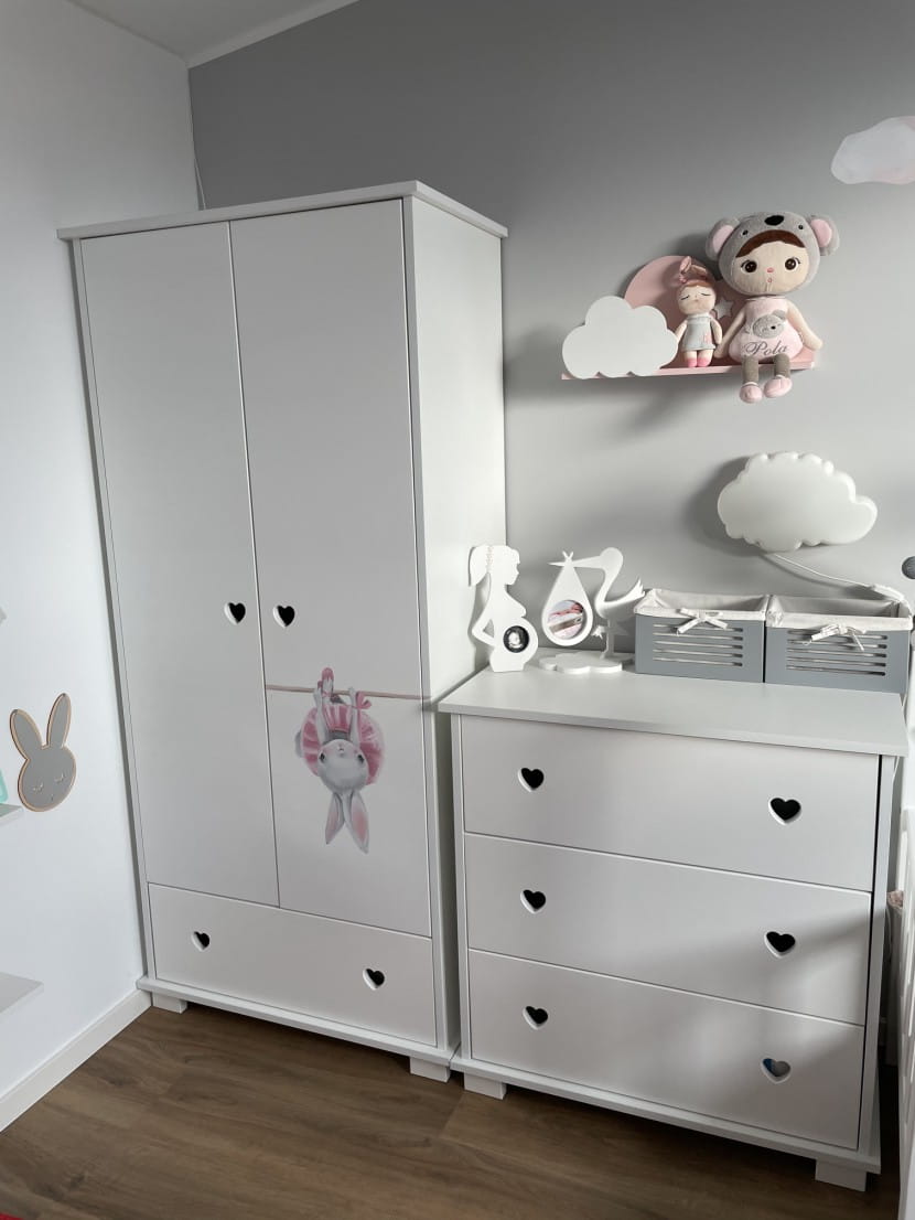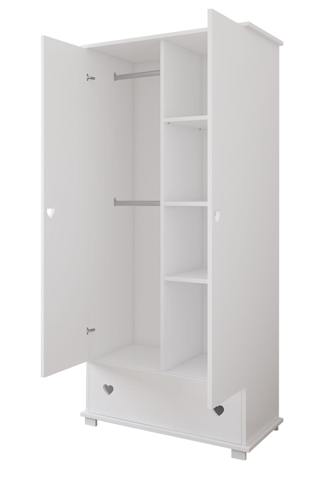 Szafa dziecięca HEART BABY – z drążkami, półkami i szufladą