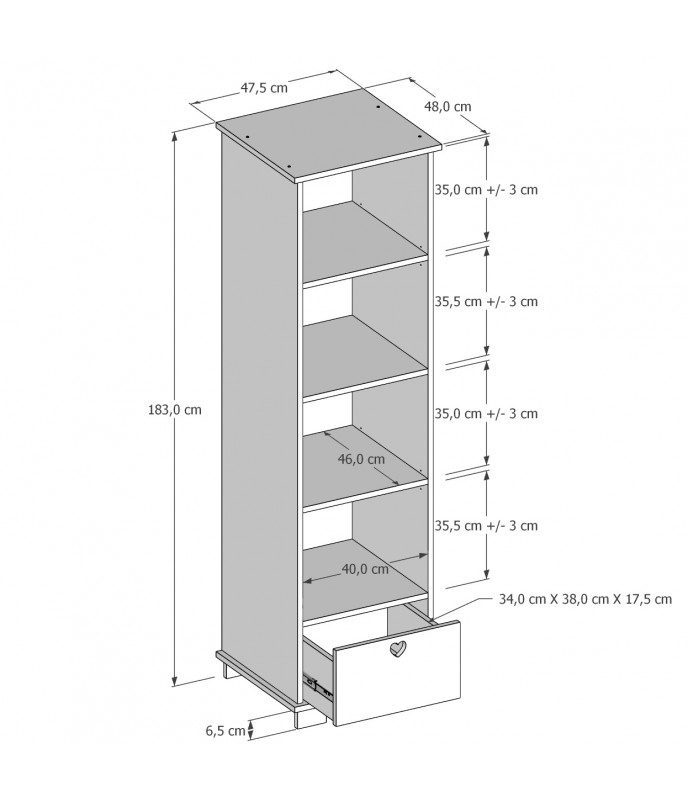 Regał dziecięcy HEART BABY – z półkami i szufladą