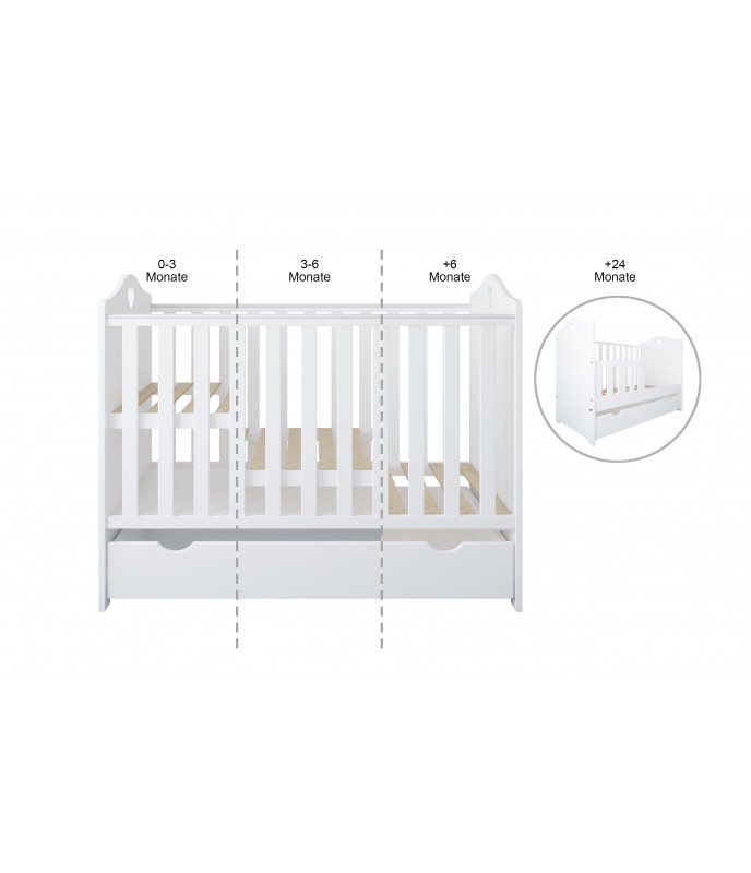Łóżeczko dziecięce HEART BABY 2w1 – 120×60 cm, białe