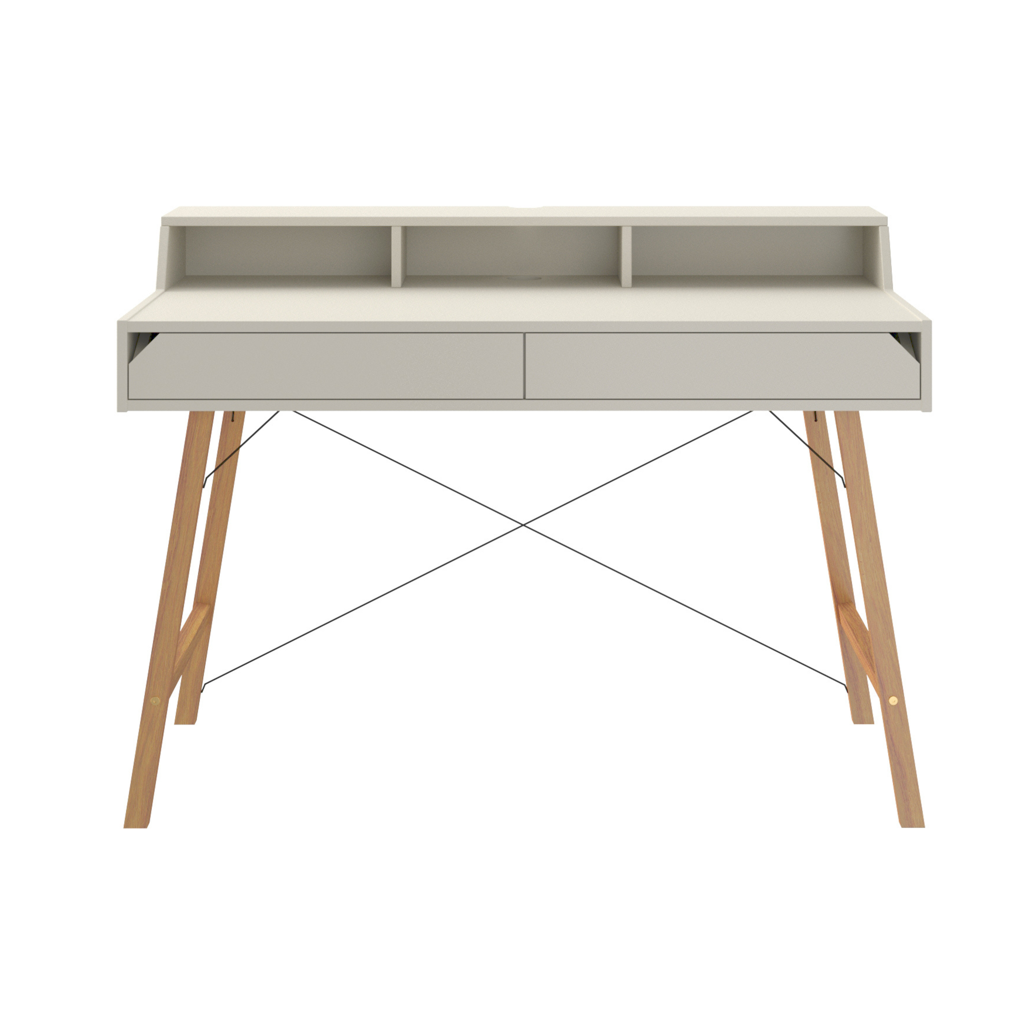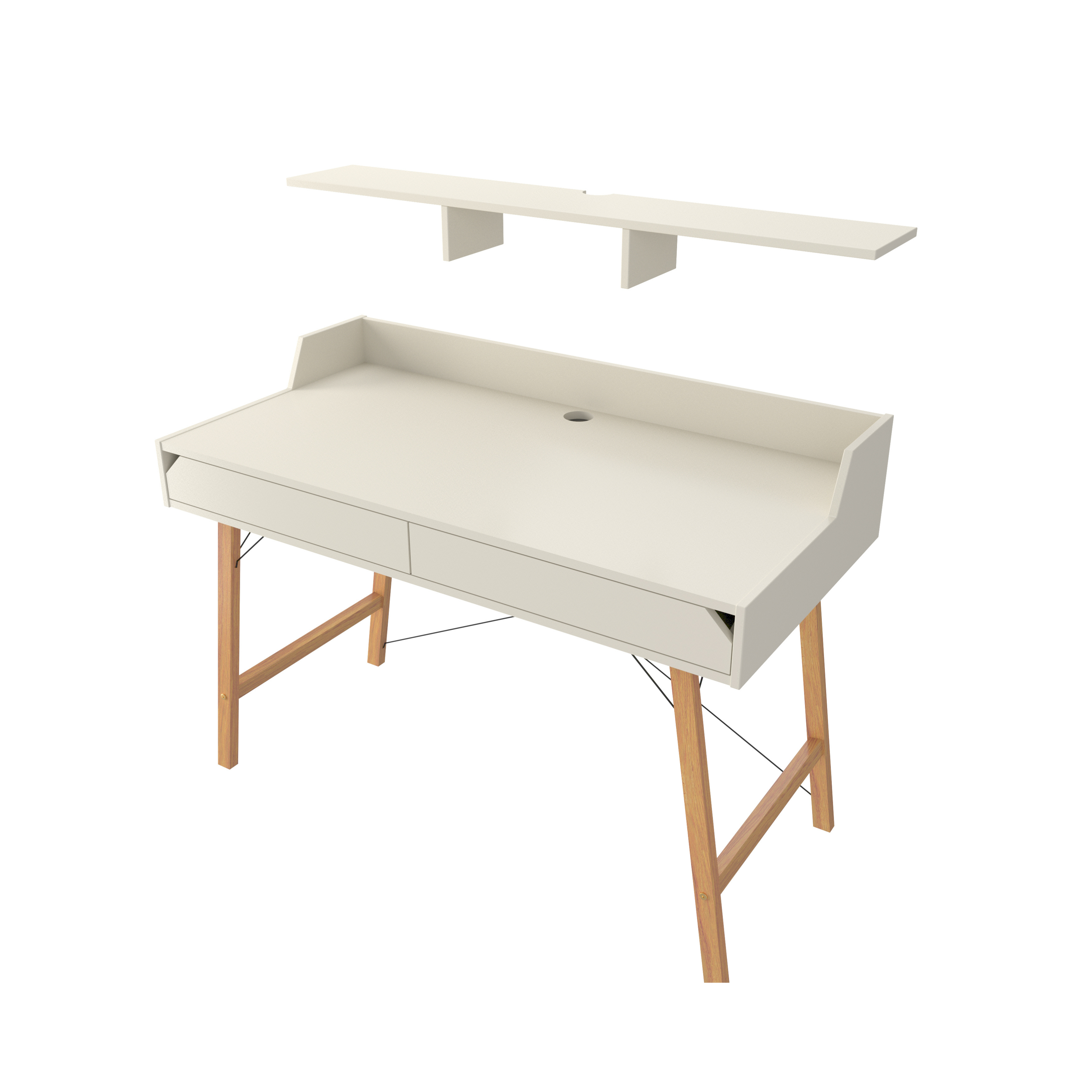 Biurko z dwiema szufladami — minimalistyczne, funkcjonalne, wyposażone w ogranicznik blatu oraz otwór na kable. Do biurka można dokupić nadstawkę, która zwiększa ergonomię i powierzchnię roboczą.