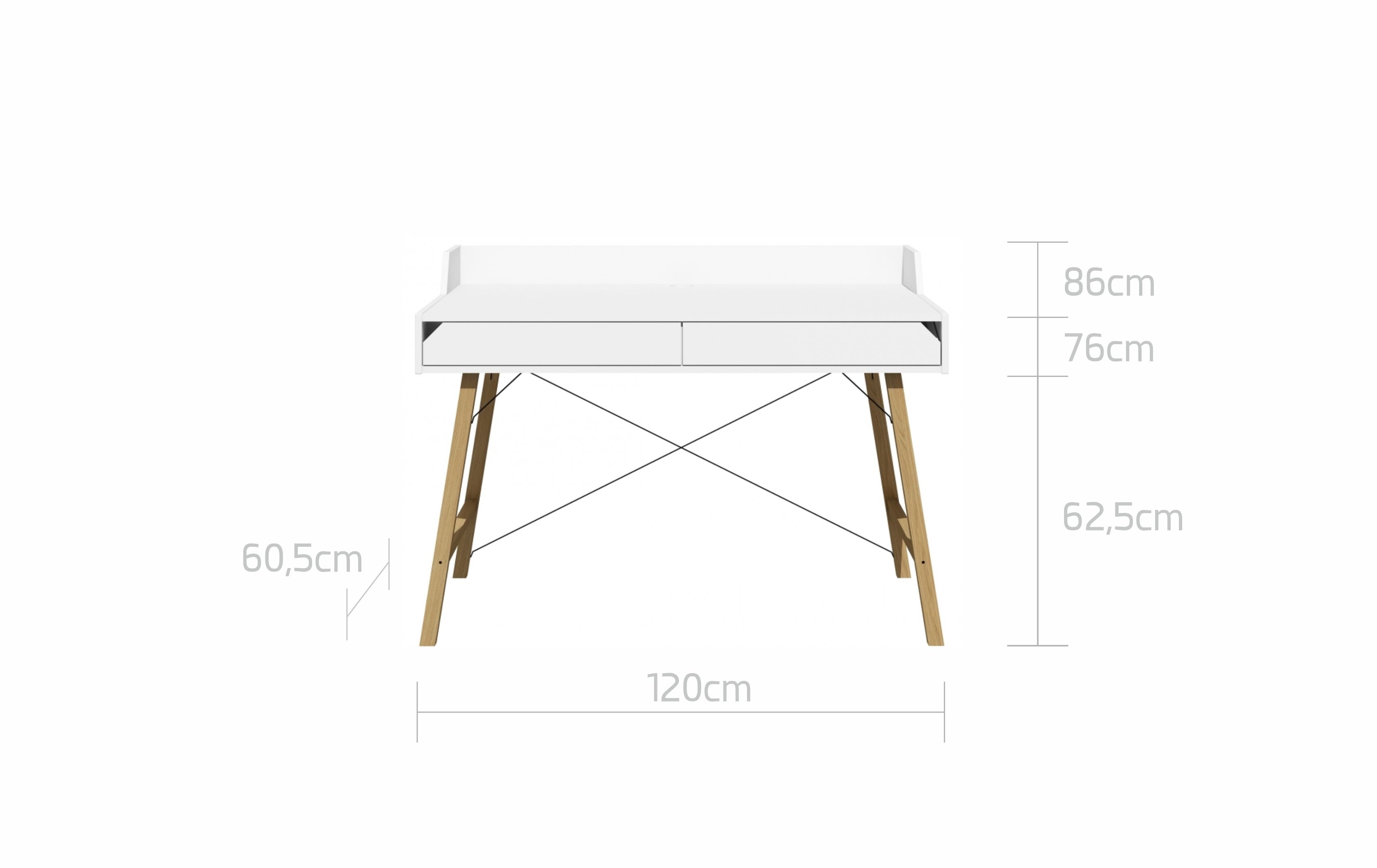 - Biurko: 120 × 60,5 × 76 cm (z ogranicznikiem: 86 cm)