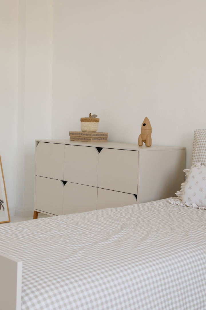 Duża komoda z sześcioma szufladami — pojemna i uniwersalna, idealna do przechowywania ubrań, akcesoriów szkolnych i codziennych drobiazgów.