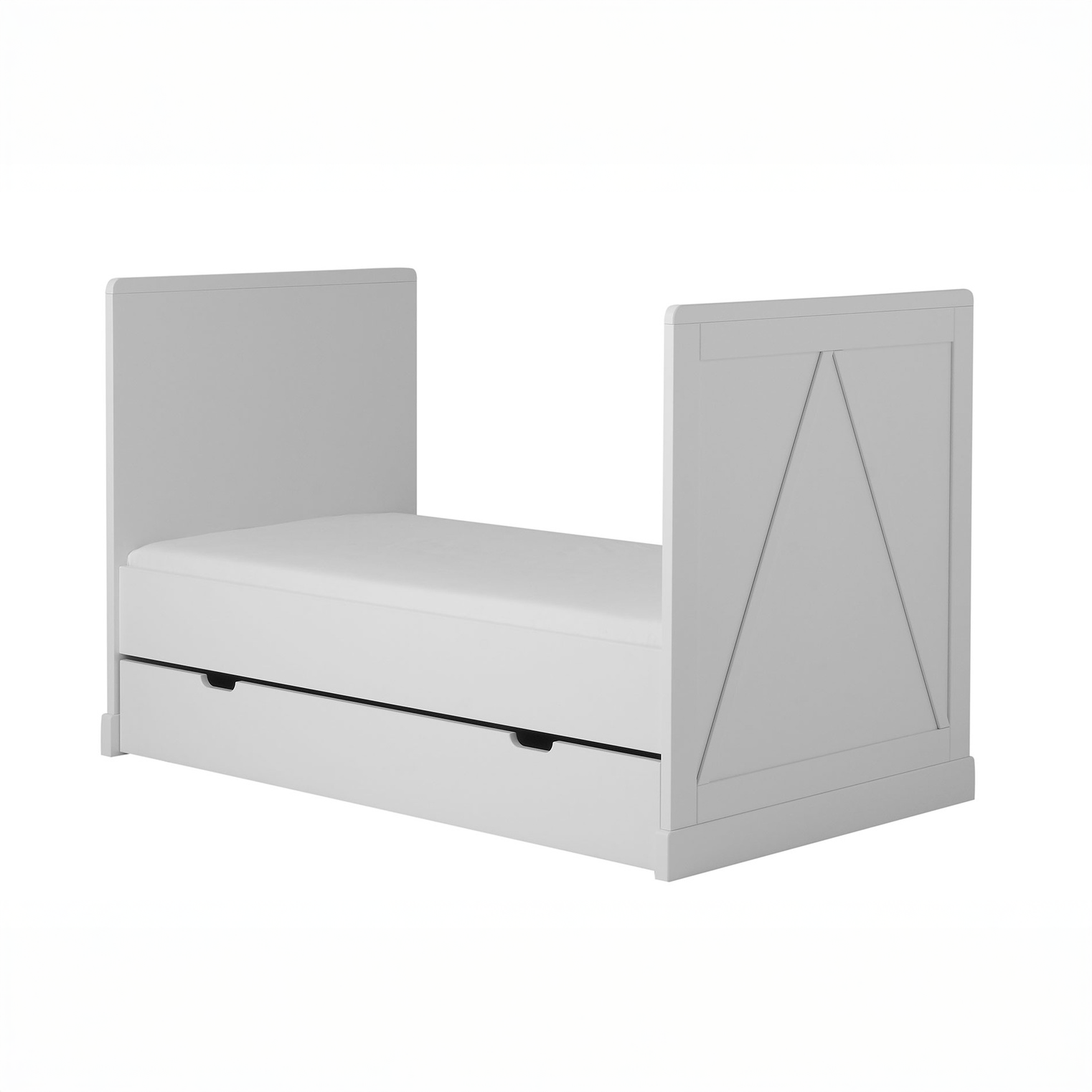 - Łóżeczko-tapczanik Marsylia 140×70 cm – trzy poziomy regulacji wysokości materaca, wyjmowane szczebelki, funkcja przekształcenia w tapczanik.