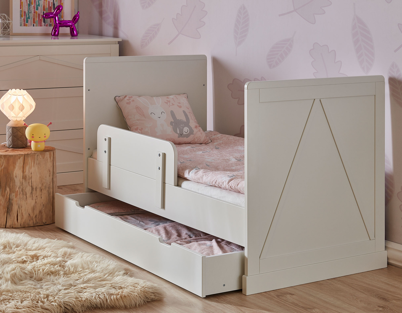 - Szuflada do łóżeczka 140×70 – praktyczne miejsce do przechowywania pościeli i akcesoriów dziecięcych.