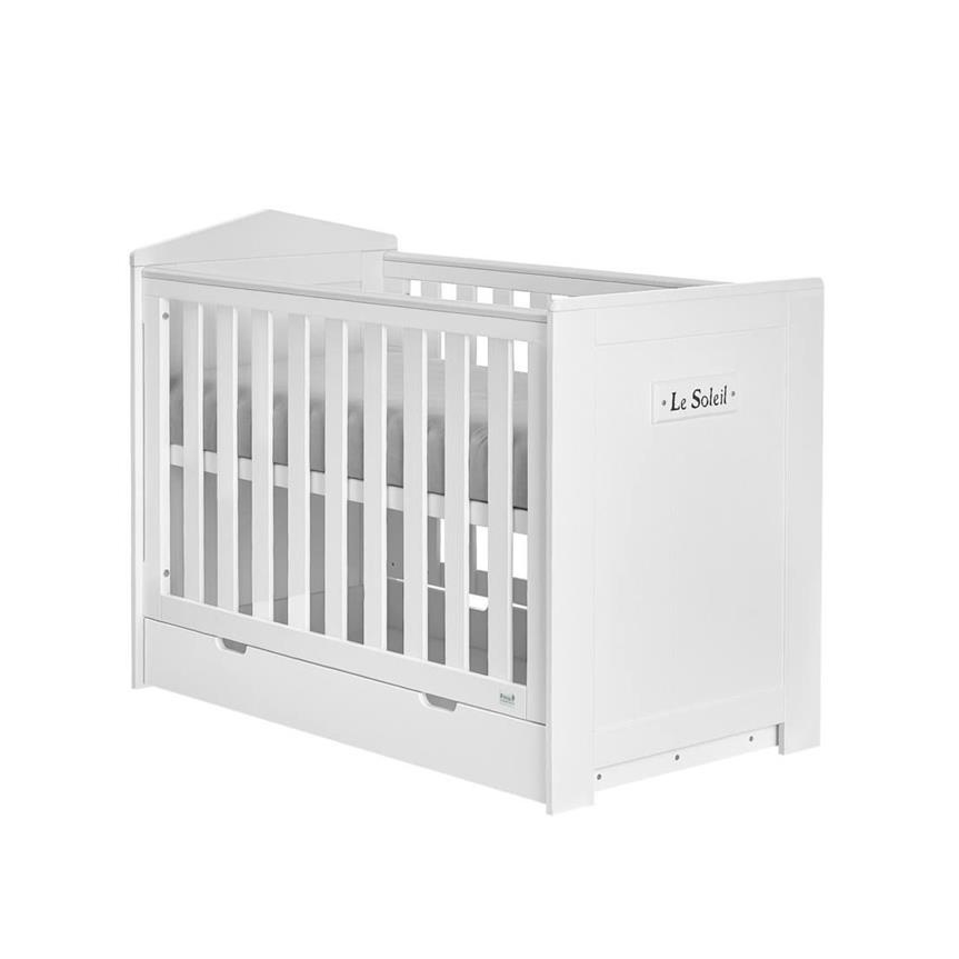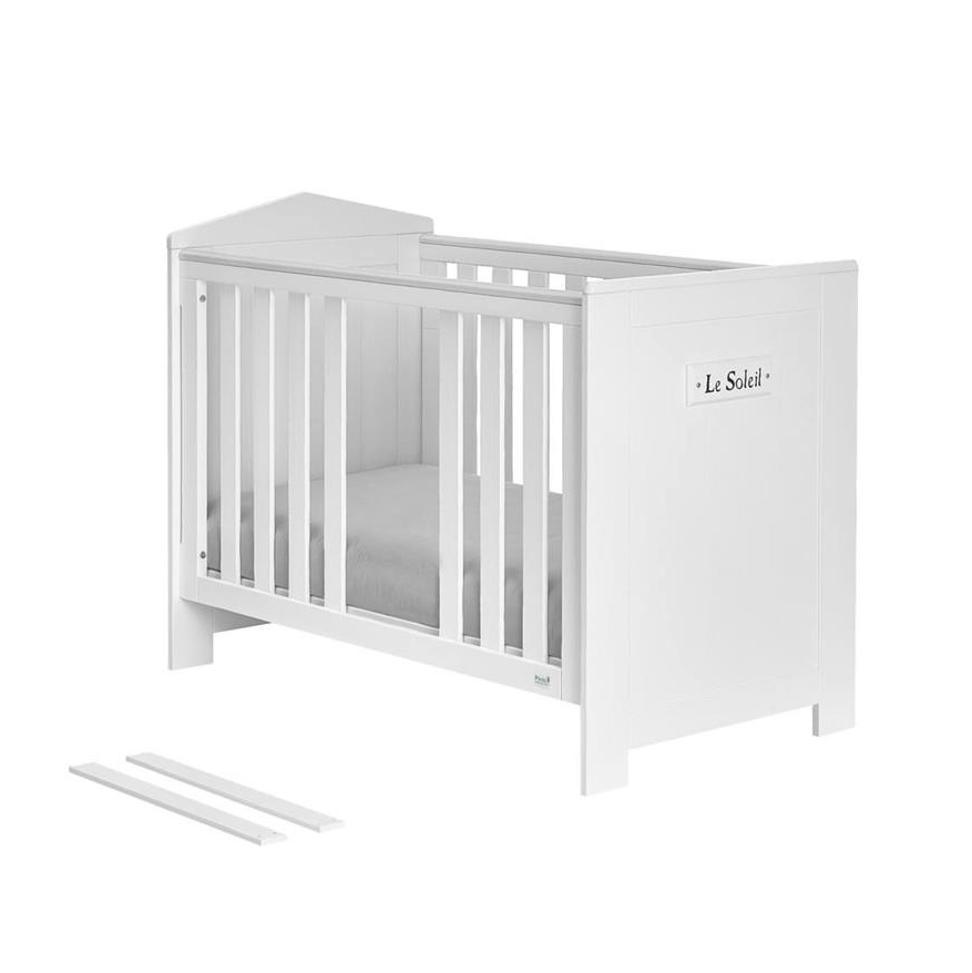 - Łóżeczko Marsylia 120×60 cm – trzy poziomy regulacji wysokości materaca, wyjmowane szczebelki, boki z nakładkami zabezpieczającymi przed gryzieniem, stelaż w komplecie.