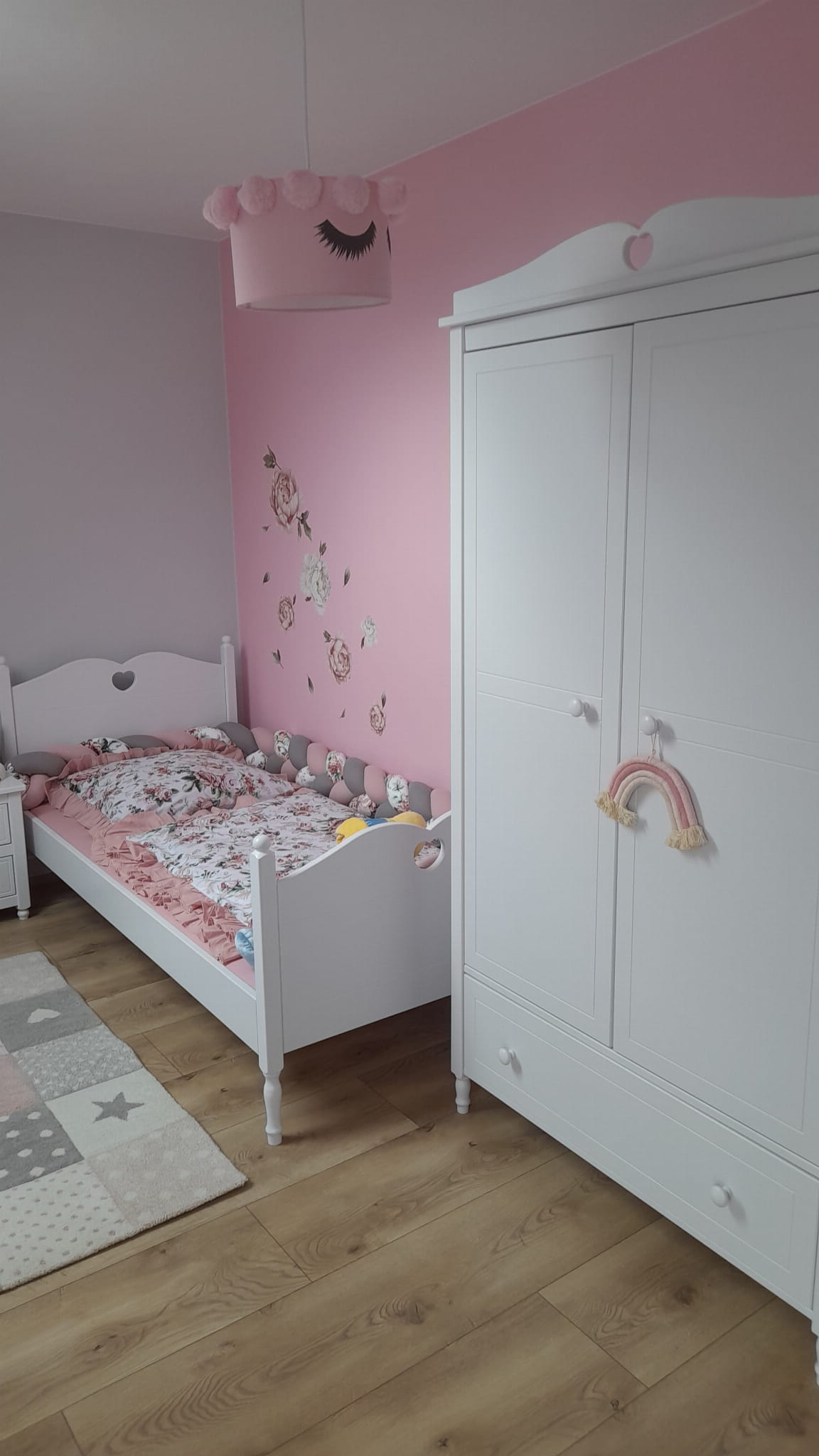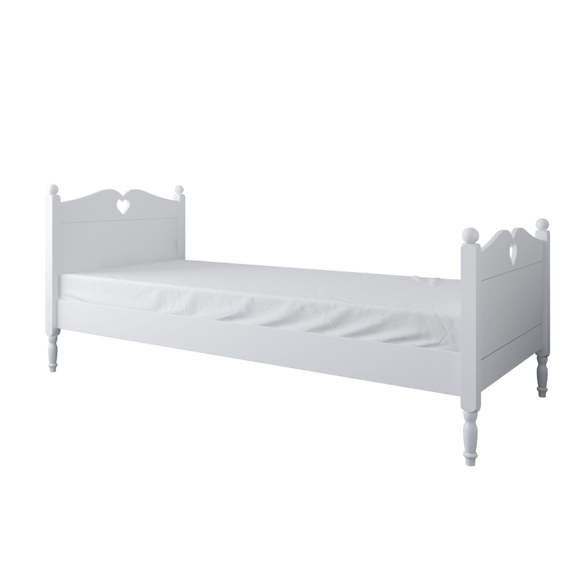 Łóżko Laura Junior to wyjątkowe dziewczęce łóżko o nośności 80 kg. Ozdobione sercowym dekorem i toczone nóżki z litego drewna, nadaje wnętrzu lekkości i uroku. Lakierowane ekologicznymi farbami, jest bezpieczne i odporne na zarysowania, zapewniając nie tylko estetykę, ale również trwałość na lata.