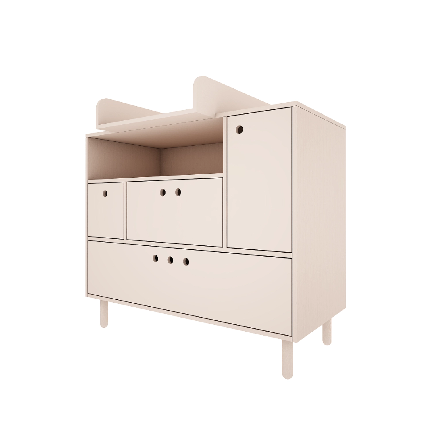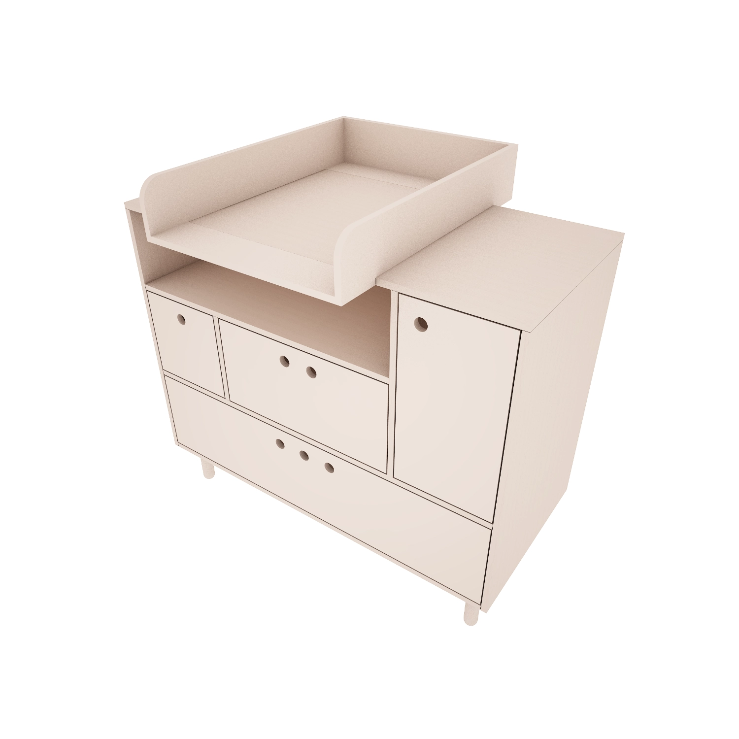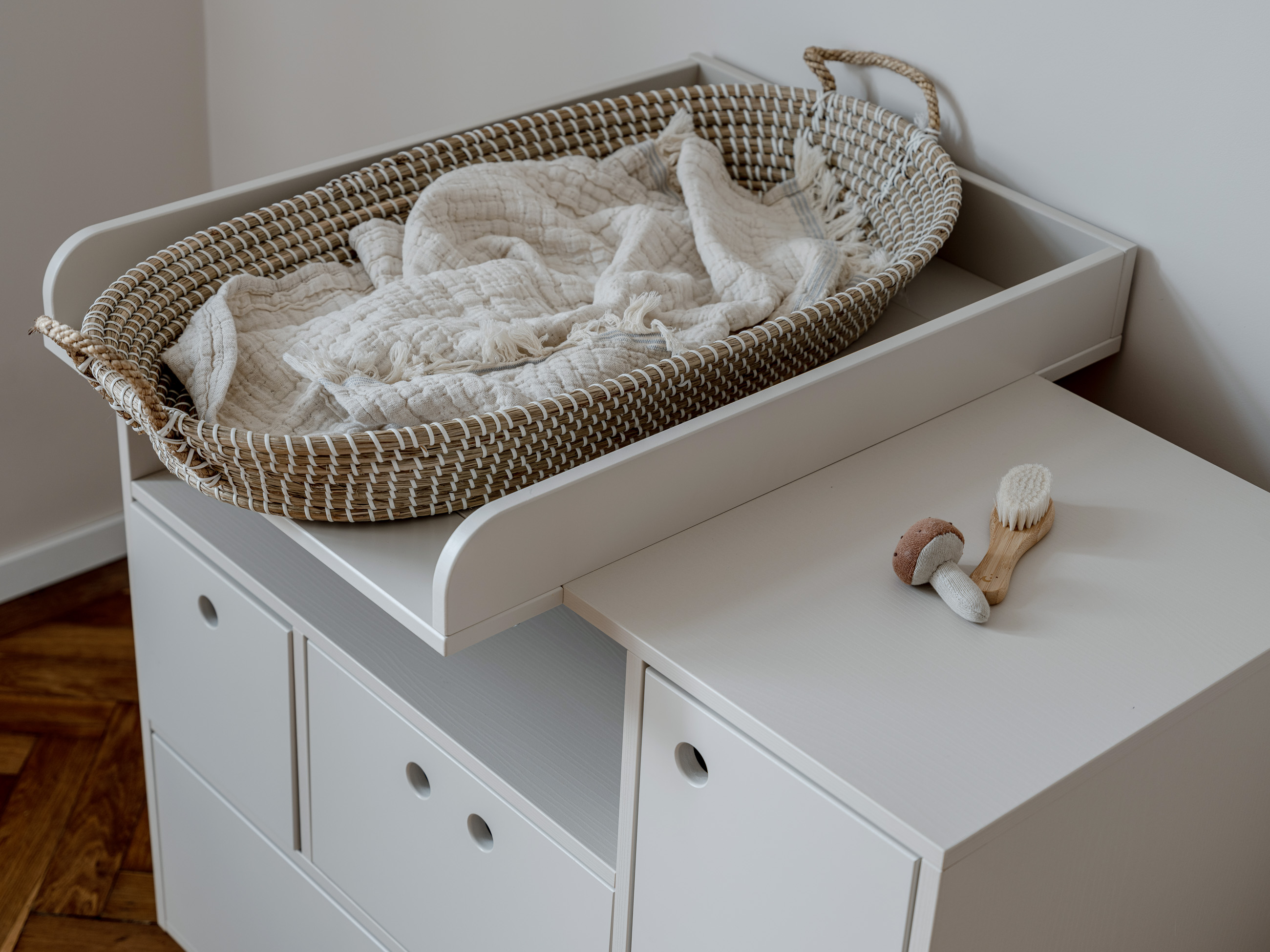 Komoda standardowo nie posiada przewijaka, jednak istnieje możliwość dokupienia specjalnej nakładki na blat, która pozwala korzystać z niej jako przewijaka.