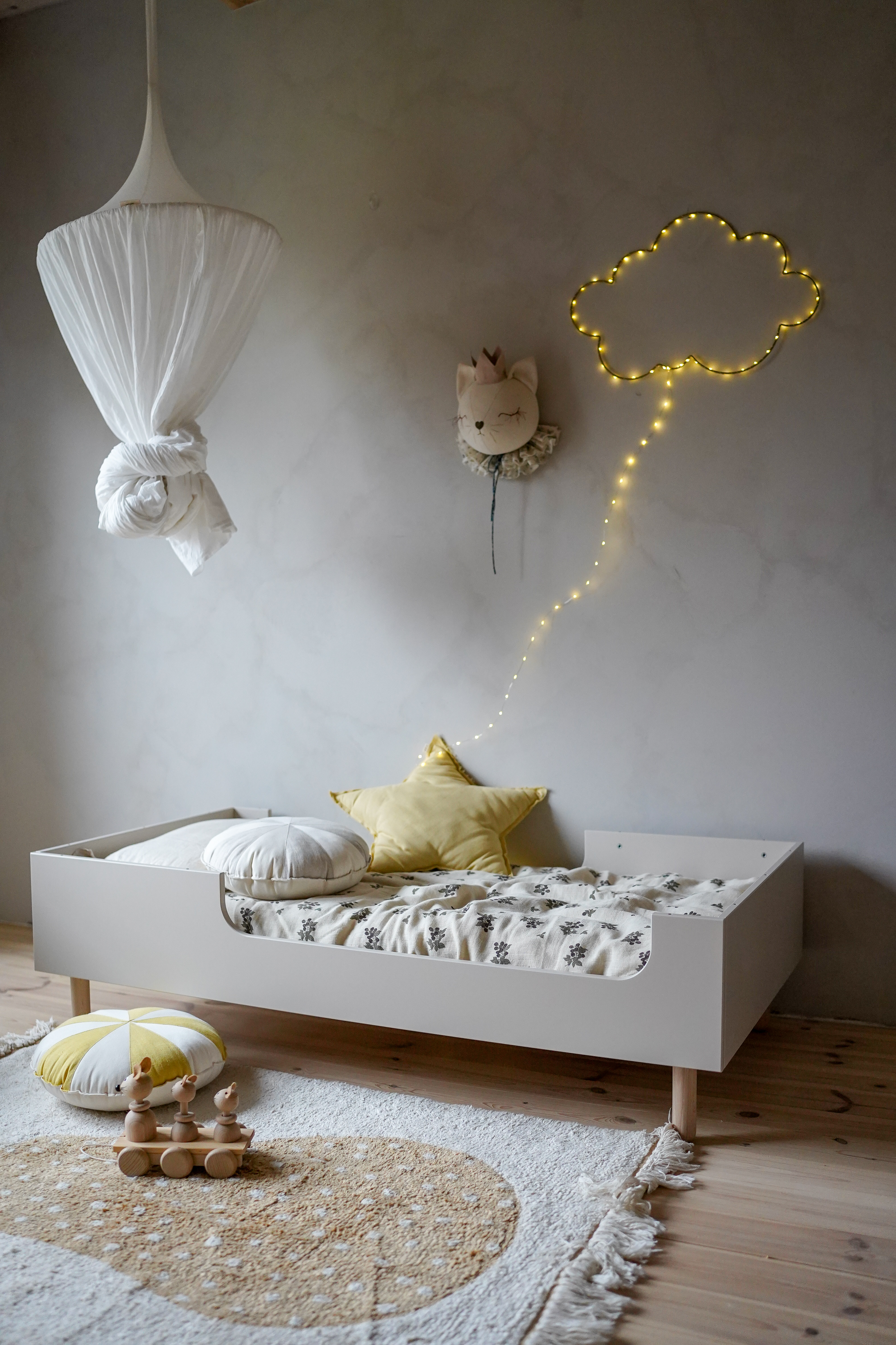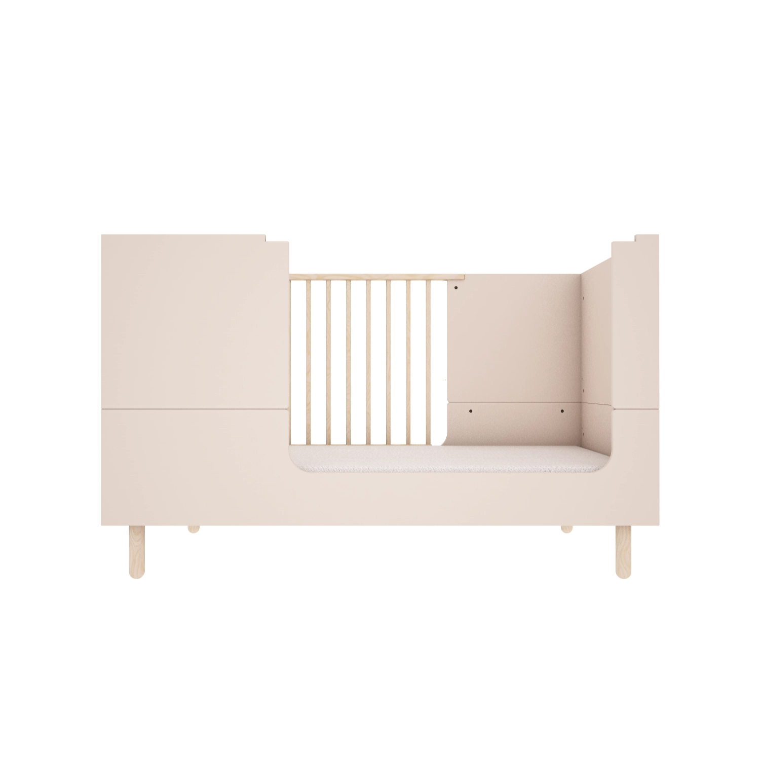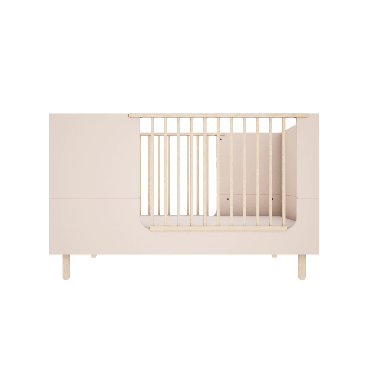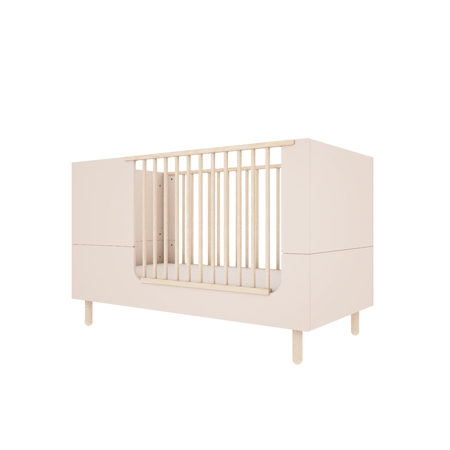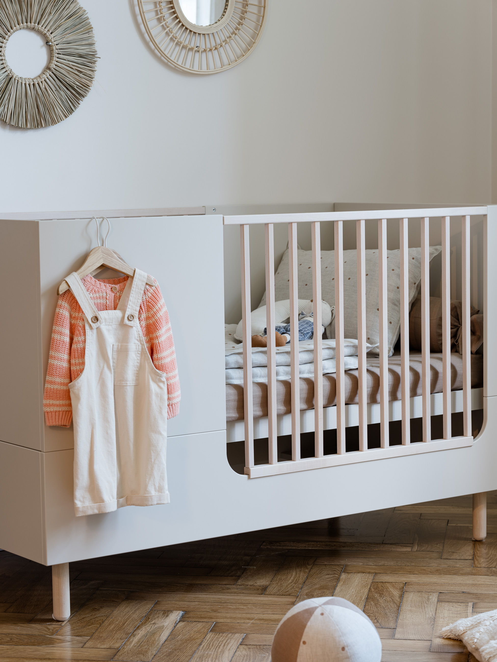 Funkcjonalne łóżeczko dziecięce z trzema poziomami regulacji stelaża, które „rośnie” razem z dzieckiem. Model można przekształcić w sofkę, a następnie w tapczanik dla starszaka. Powierzchnia spania 140 × 70 cm zapewnia komfort na pierwsze lata życia.
