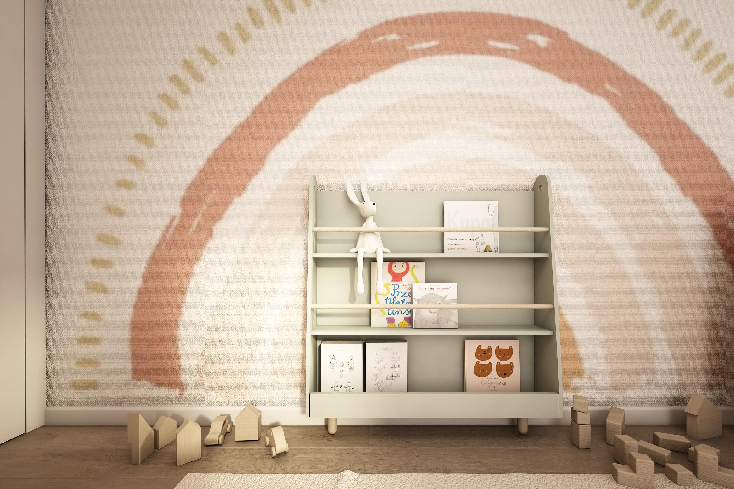 Regał inspirowany metodą Montessori, zaprojektowany tak, aby dziecko miało łatwy dostęp do książek i mogło samodzielnie wybierać lekturę. Otwarta forma i ekspozycja okładek przodem wspierają rozwój nawyków czytelniczych.